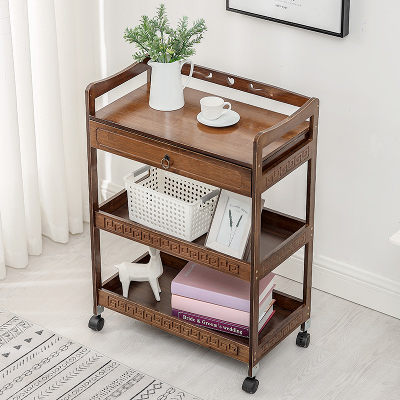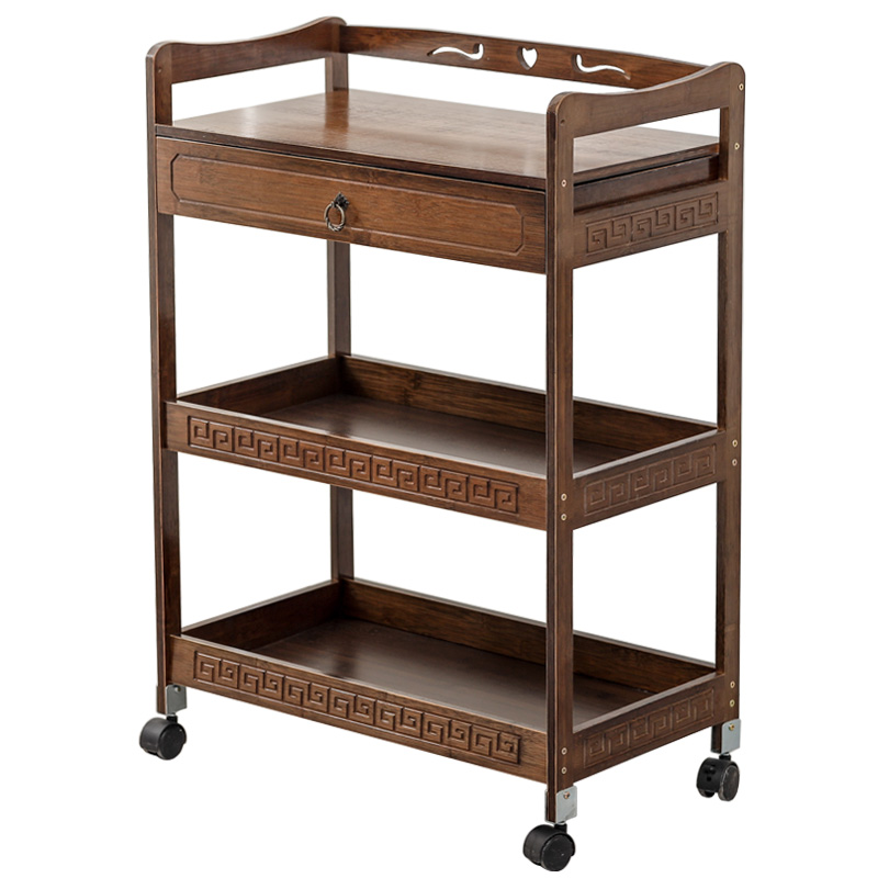 美容小推车置物架美容院专用工具车竹制实木三层美发美甲店储物柜 - 劲恺百货官营店