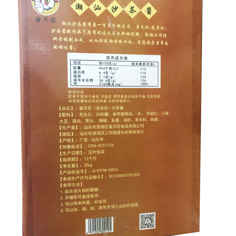 普天旺原味沙茶酱潮汕特产火锅酱20KG/桶调味料火锅蘸酱 - 潮汕味道调味店