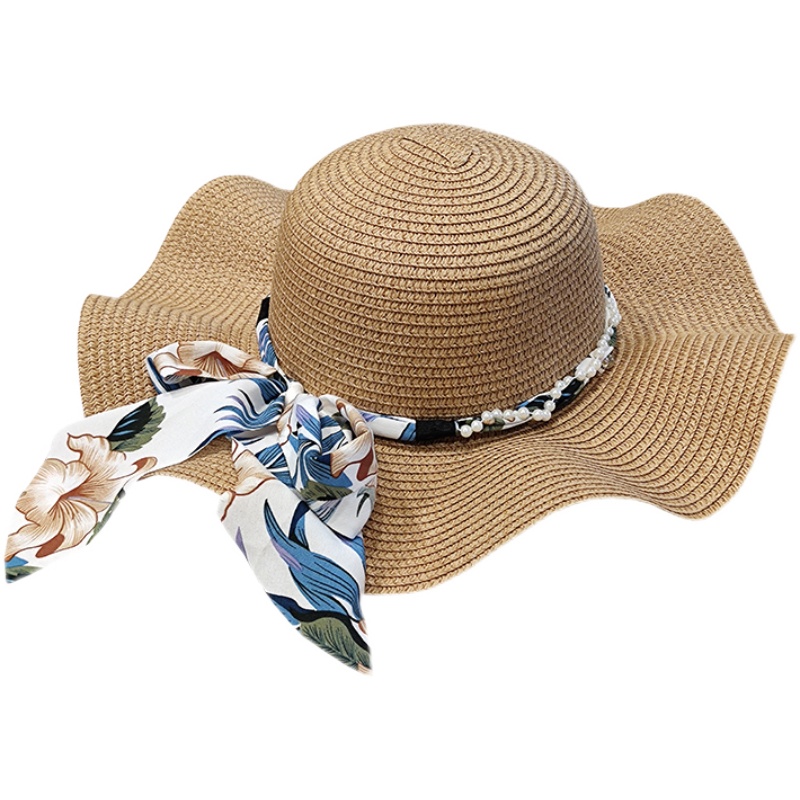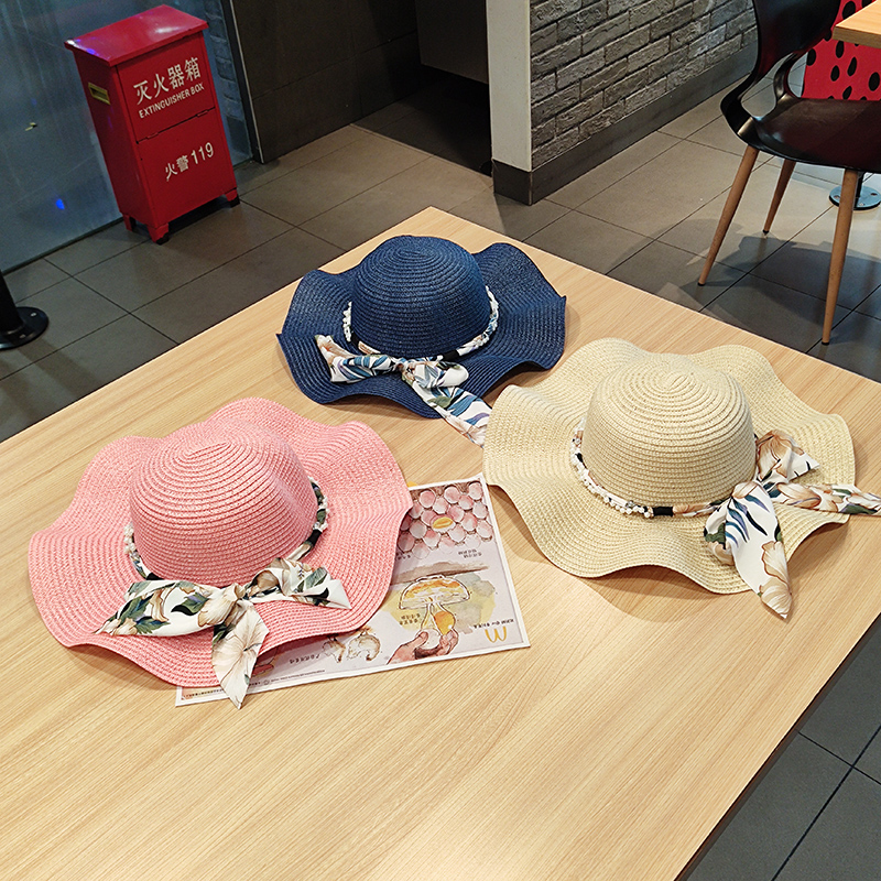 简约田园花朵蝴蝶结飘带草帽子女春夏天海边出游防晒大檐优雅盆帽 - 黄小邪帽子铺