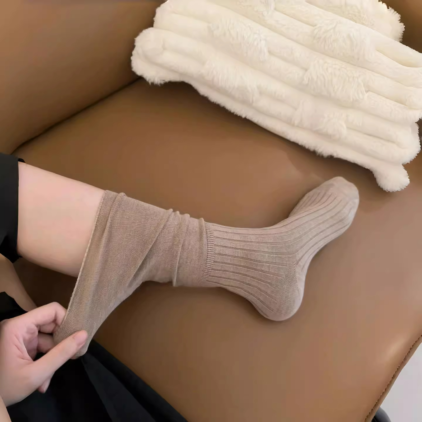 【5双装】卡其色属实有点好看~简单的高级感中长款少女堆堆小腿袜 - WMY SOCKS