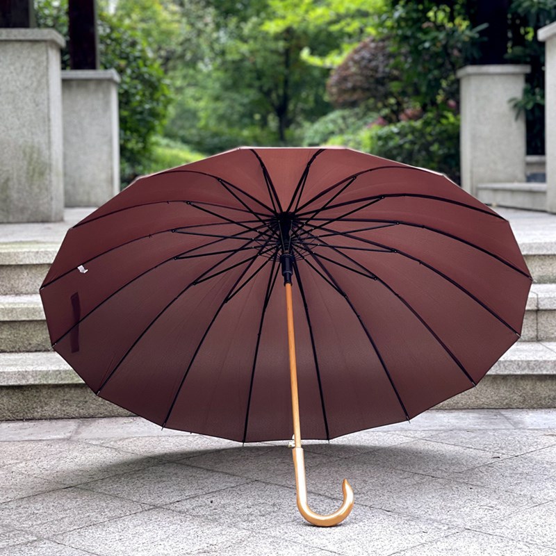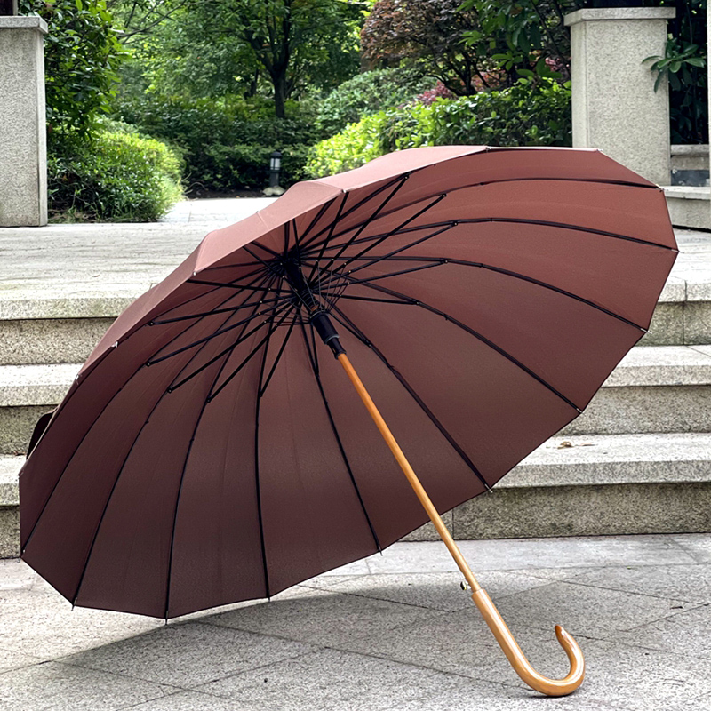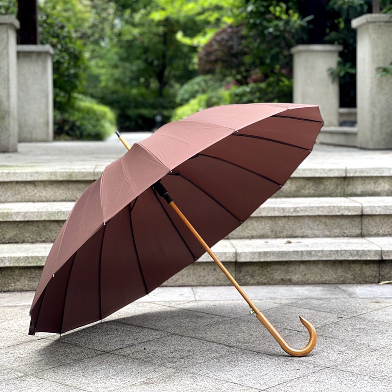 咖啡色男女雨伞木制文艺复古16骨自动长柄伞晴雨伞U休闲用伞商务 - 元栏工厂