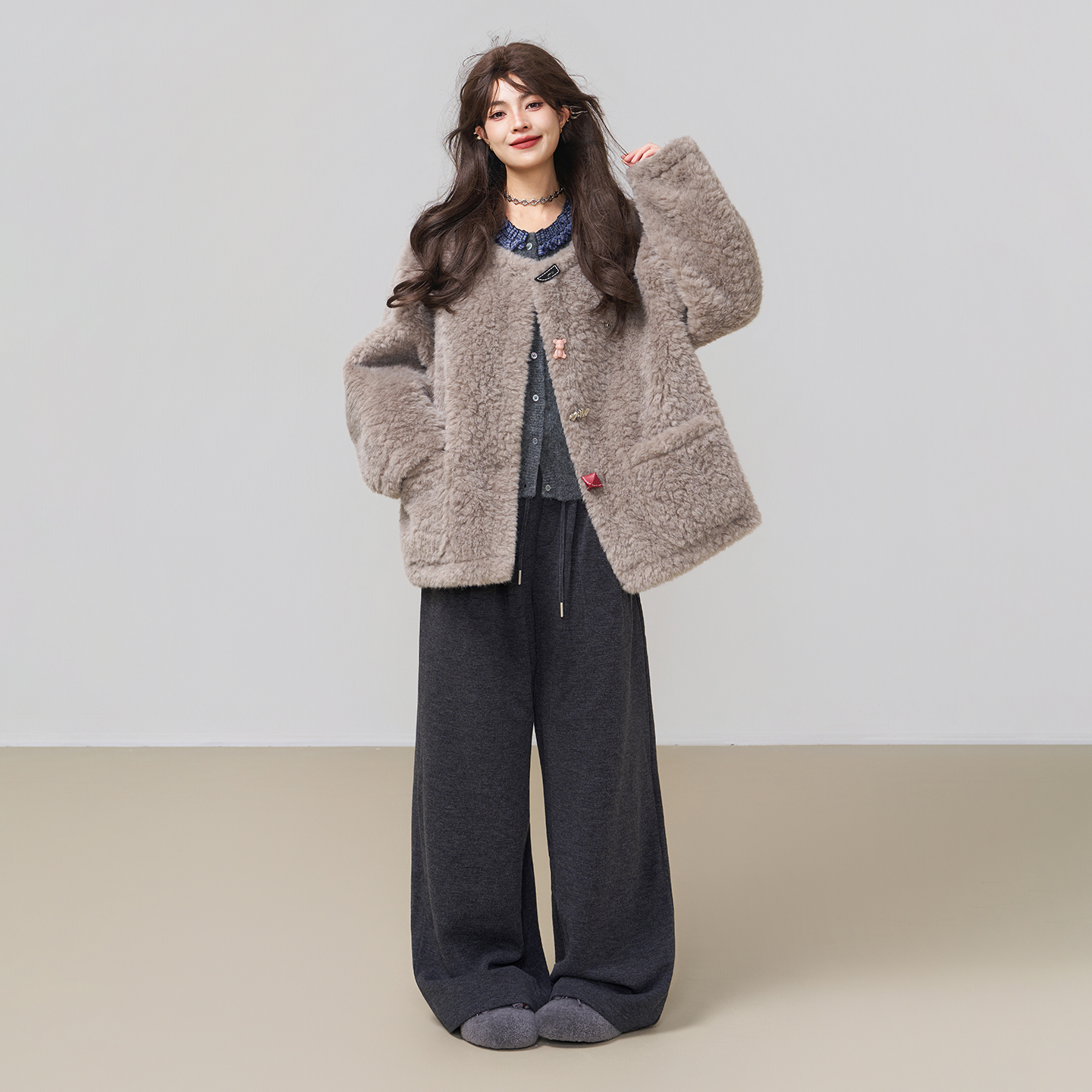 KEIKO 异形扣饰环保羊羔绒外套女冬季超好看皮毛一体毛毛皮草大衣 - 凯莉欧服饰旗舰店