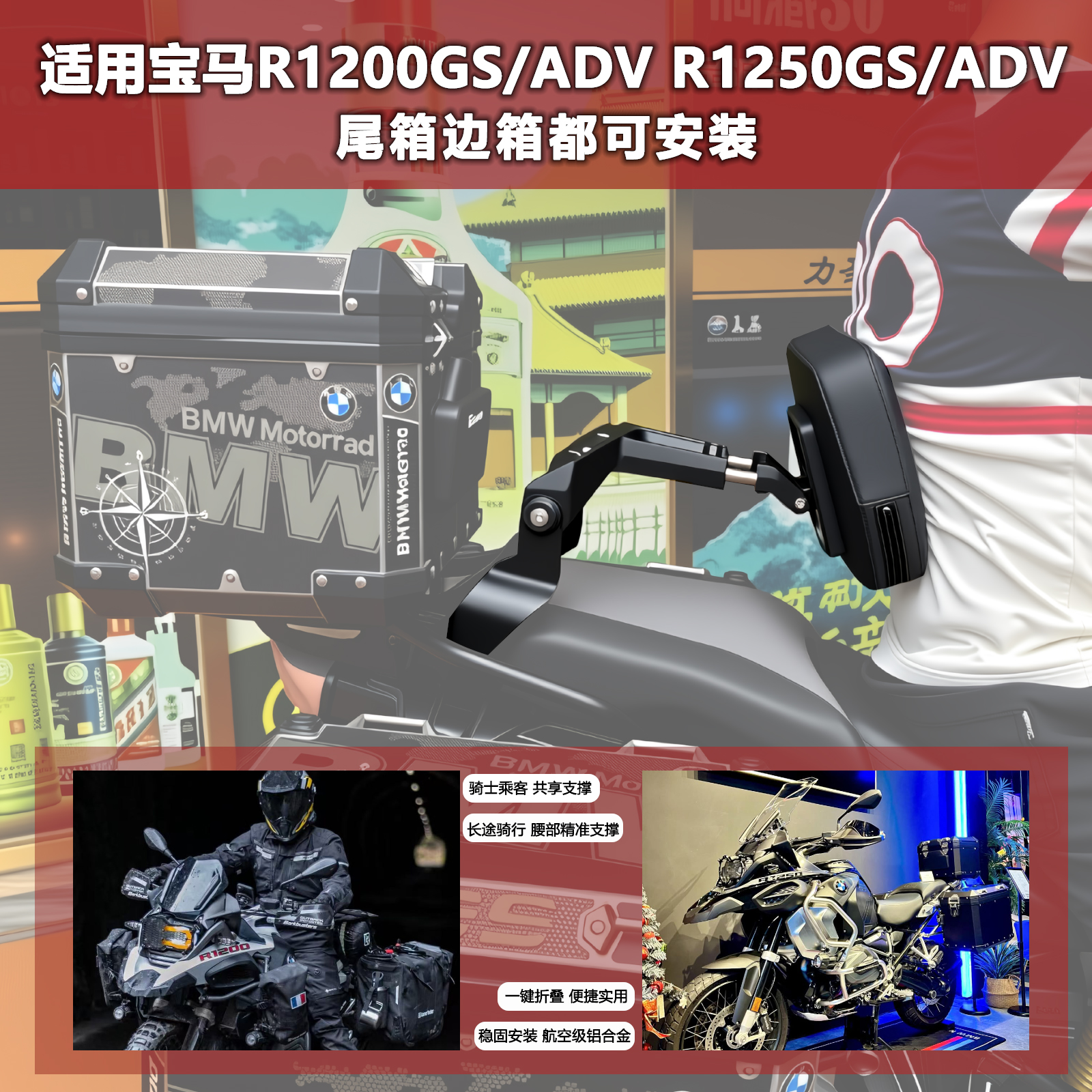 适用宝马R1200GS/ADV R1250GS/ADV改装司机乘客后靠背 多功能靠背