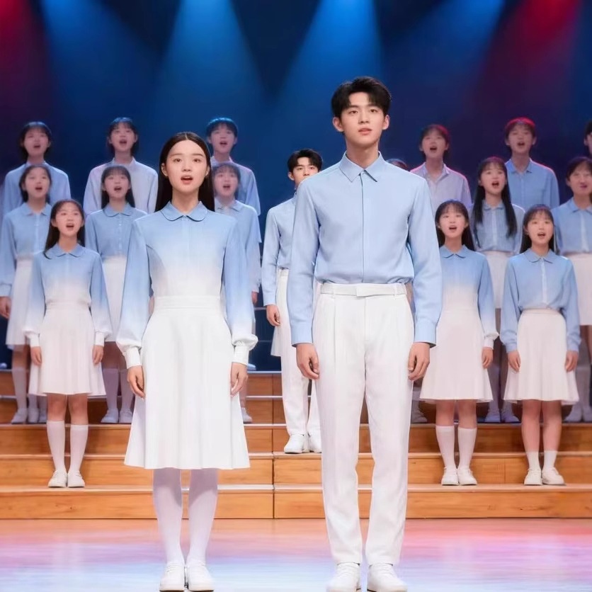 国庆儿童合唱朗诵演出服爱国蓝红色歌主题中小学生演讲比赛女诗歌 - 天天优选让生活更美好