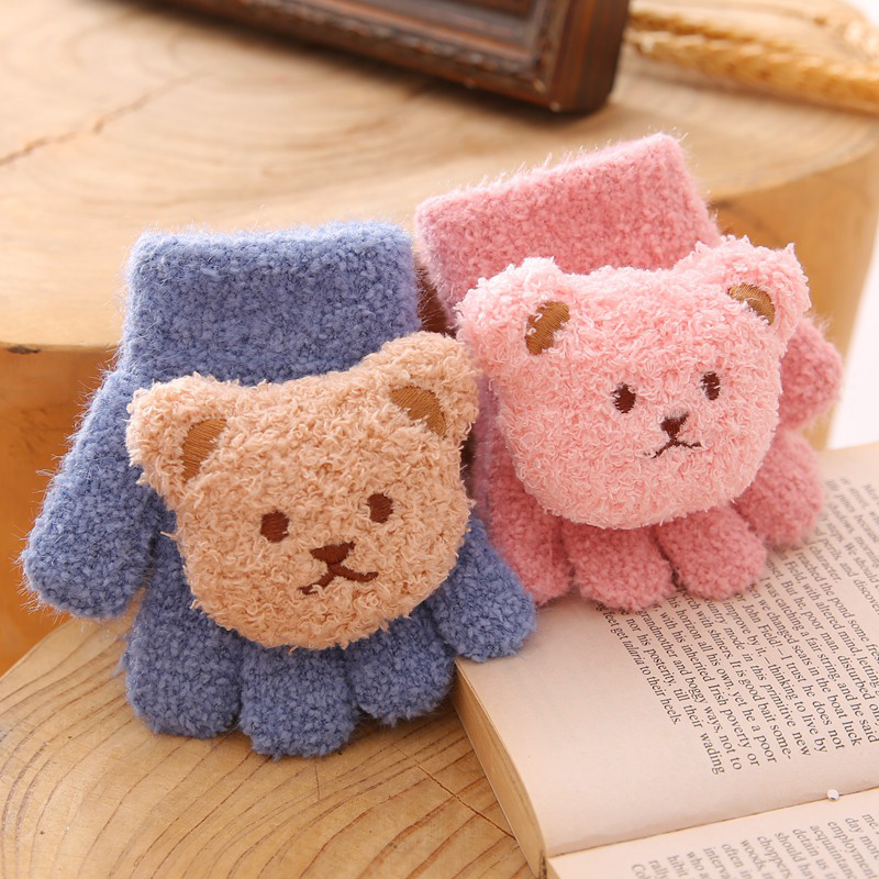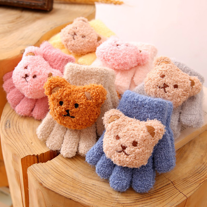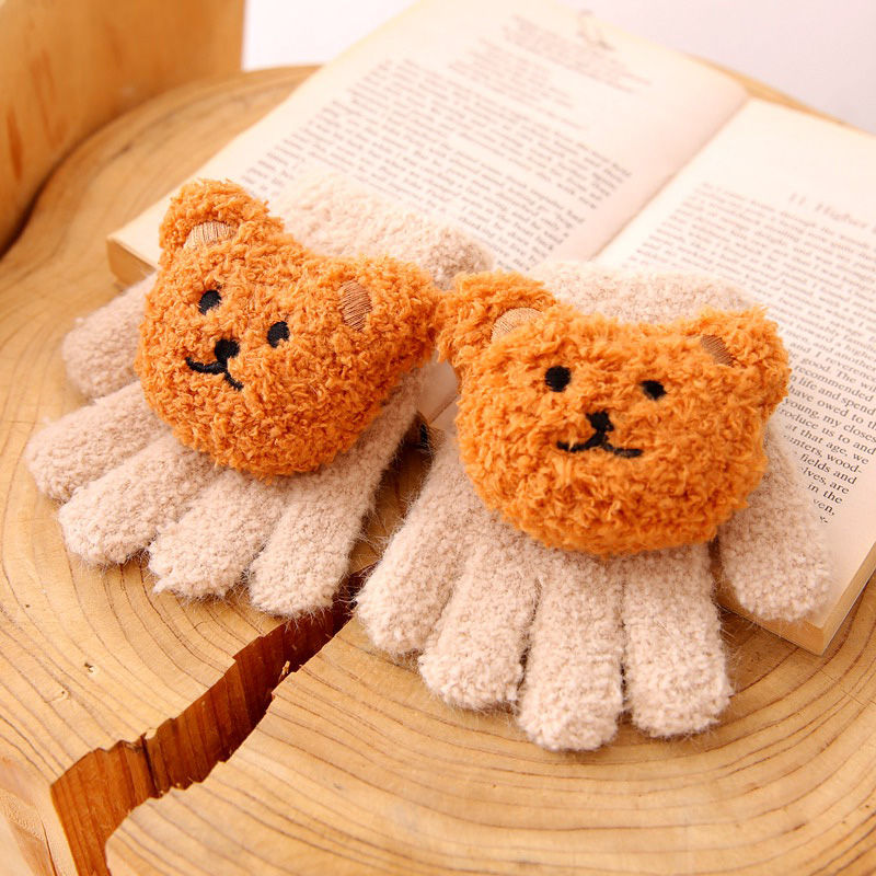 儿童宝宝五指手套秋冬季迷你可爱小熊男童女童婴幼儿小童分指保暖 - 班派迪旗舰店