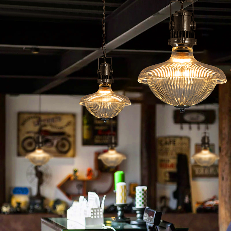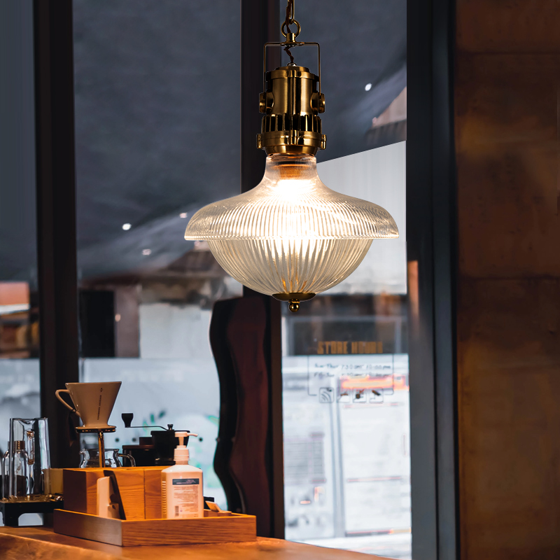 法式复古餐厅小吊灯玻璃灯罩美式工业风黄铜日式吧台上方中古吊灯 - 陆家照明