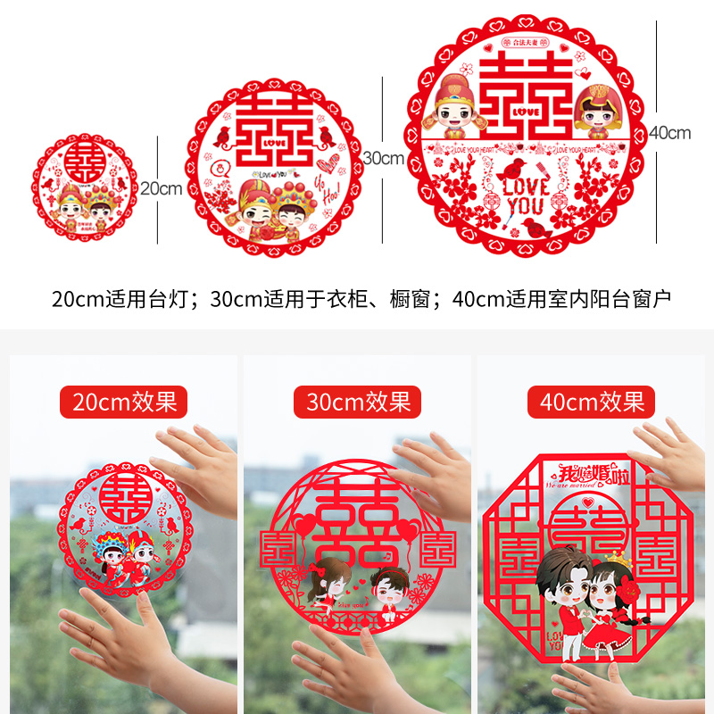 您的位置:他他商城  >  居家  >  喜字结婚贴纸婚房装饰布置婚庆用品双喜子门贴窗户静电贴剪纸窗花