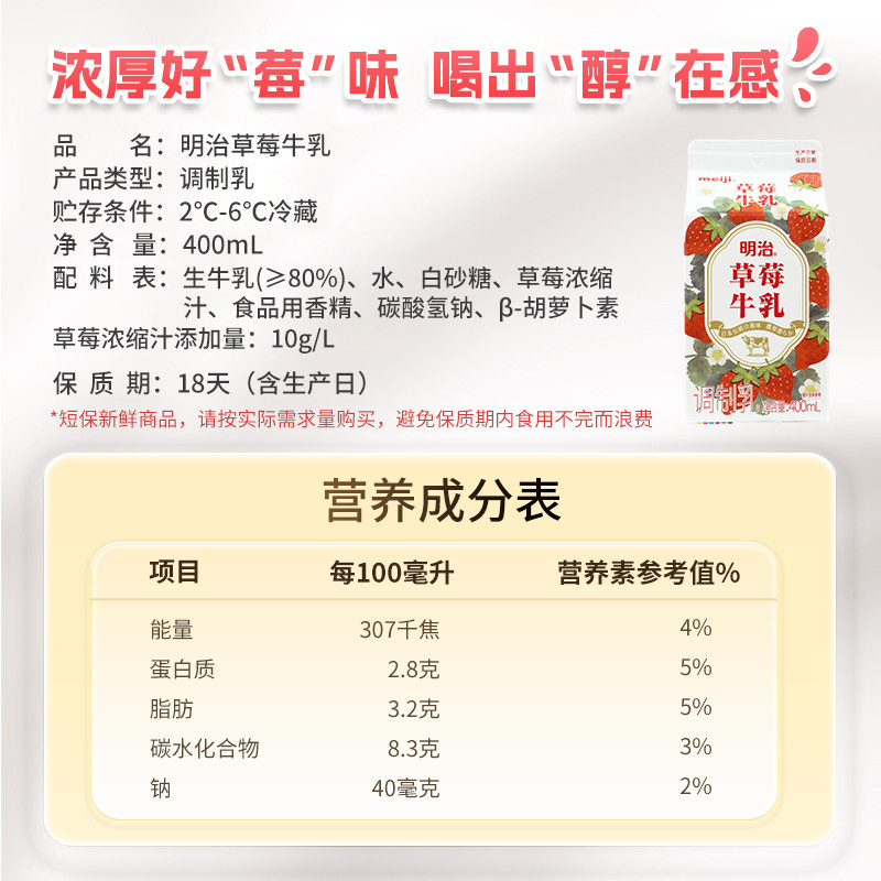 明治Meiji草莓牛乳900ml/400ml 低温品 - meiji明治旗舰店
