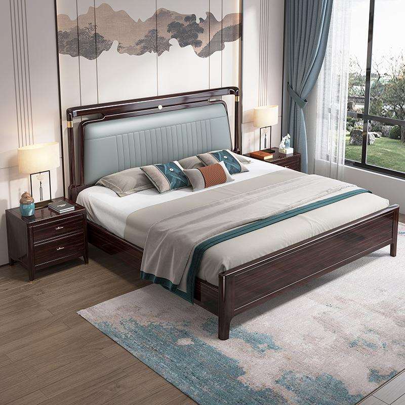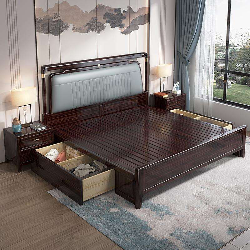 新中式实木床胡桃木高箱床1.5米1.8m双人床现代中式主卧储物婚床 - 建科工厂直销店