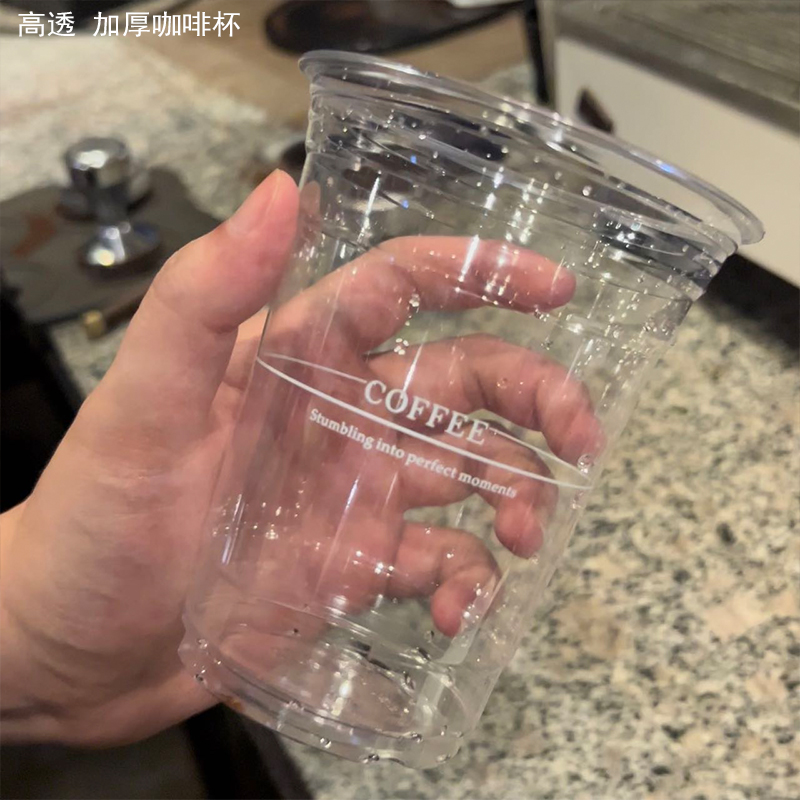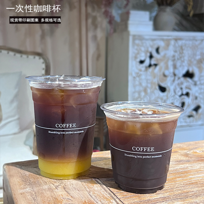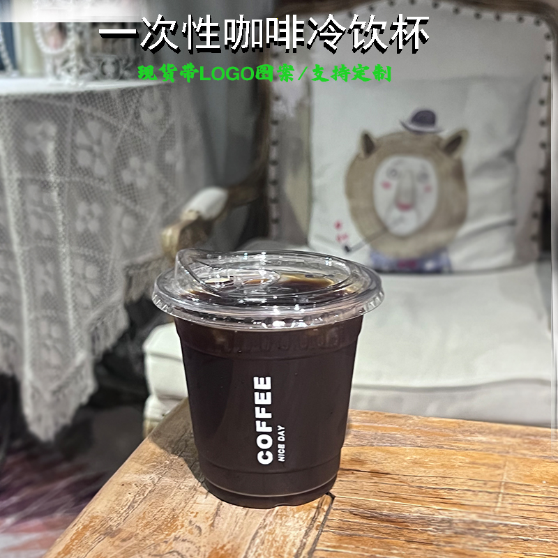 一次性咖啡杯PET冷饮杯加厚高透拿铁美式杯带盖商用外卖打包杯log - 壹家纸塑