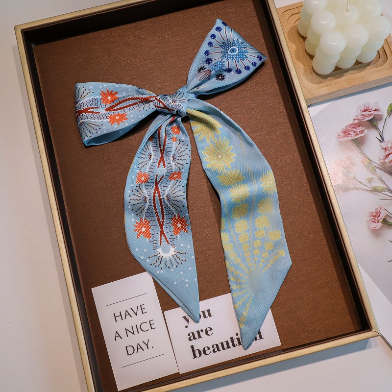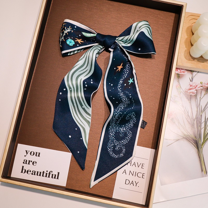 北欧新款小长条丝巾女多功能绑包包手柄带飘带仿真丝领巾丝巾发带 - S Lumiere 丝光集