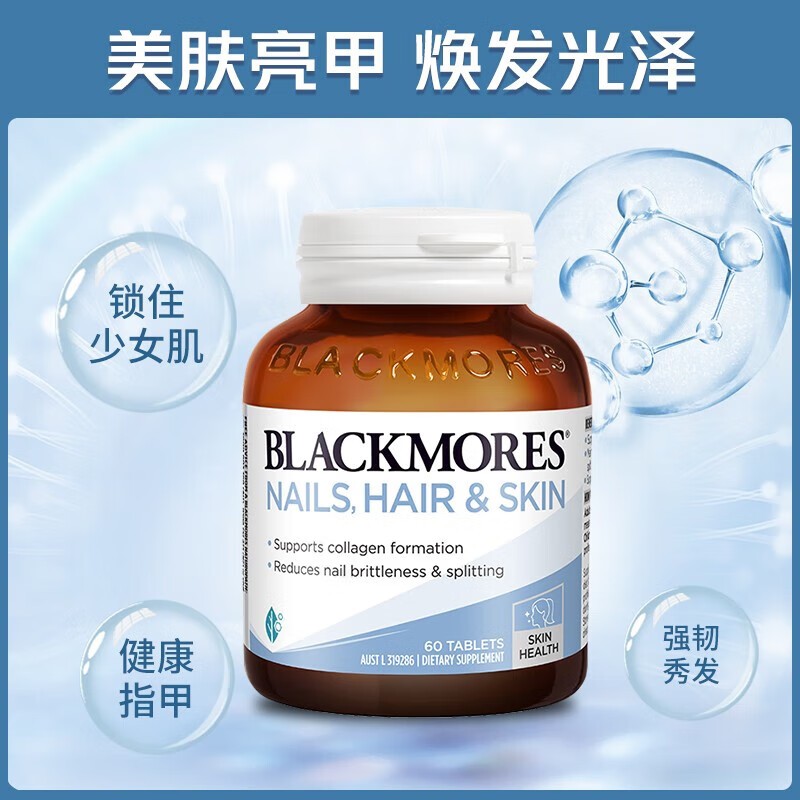 保税仓 澳洲Blackmores澳佳宝美肤亮甲护发60粒成人促进胶原蛋白
