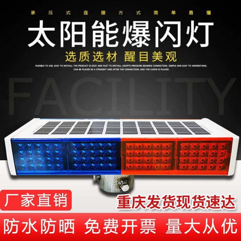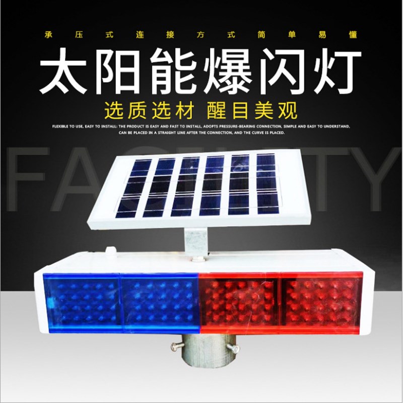 您的位置:他他商城  >   >  太阳能爆闪灯道路施工频闪红蓝x双面路障交通太阳能警示灯LED爆闪