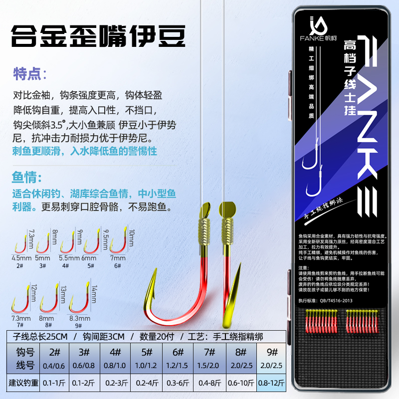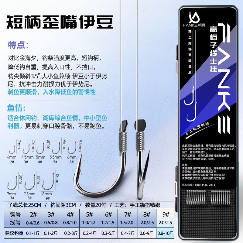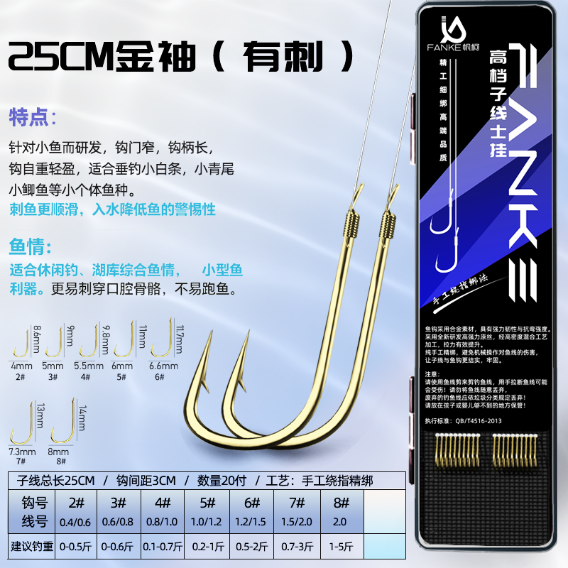 高端25cm短子线双钩成品歪嘴伊豆细条钩金袖野钓专用鲫鱼钩子精品 - FANKE帆柯