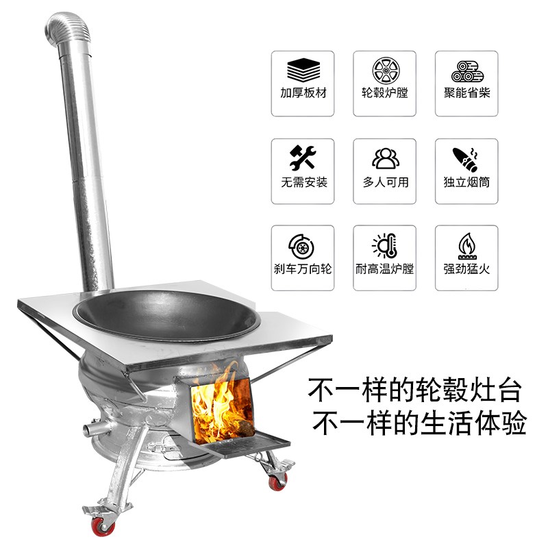 轮毂改造柴火炉汽车钢圈柴火灶台加厚户外灶台农村可移动滑轮地锅 - tb6867864371的小店67