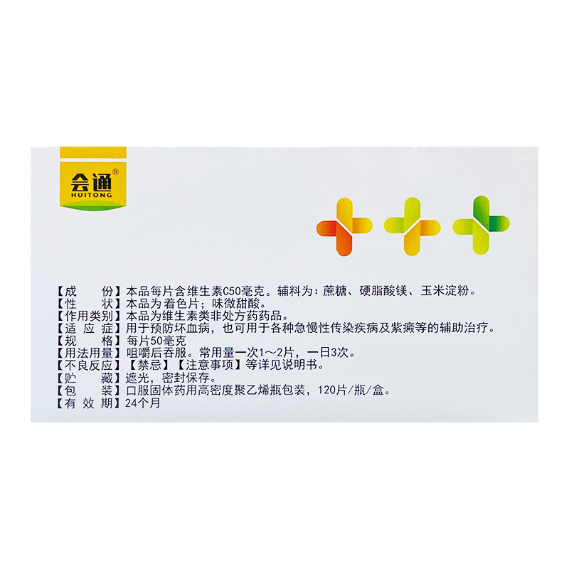 会通维生素C咀嚼片50mg*120片正品用于预防坏血病紫癜辅助治疗cx - 安让堂大药房旗舰店