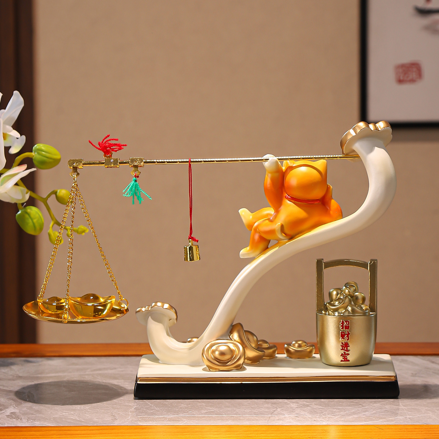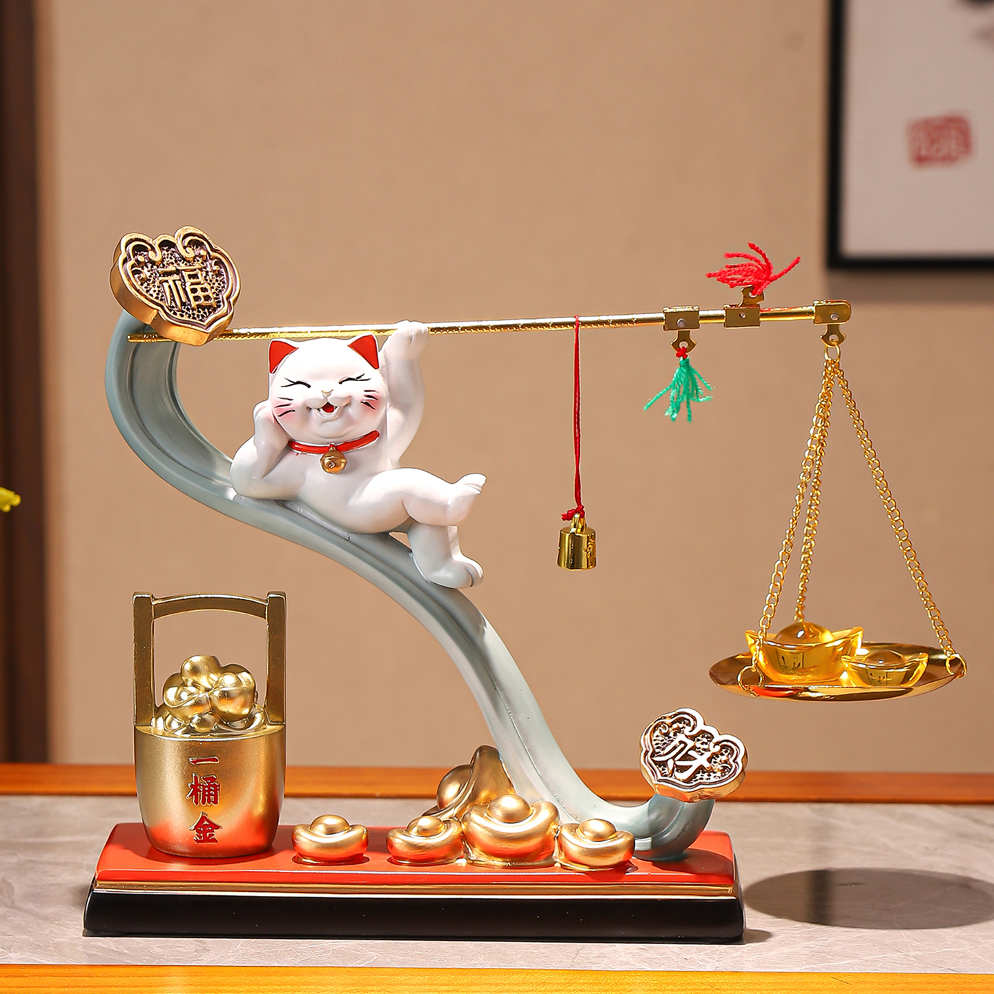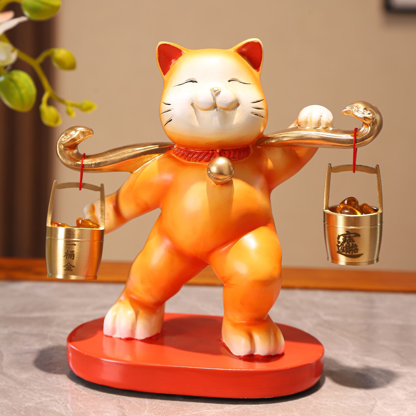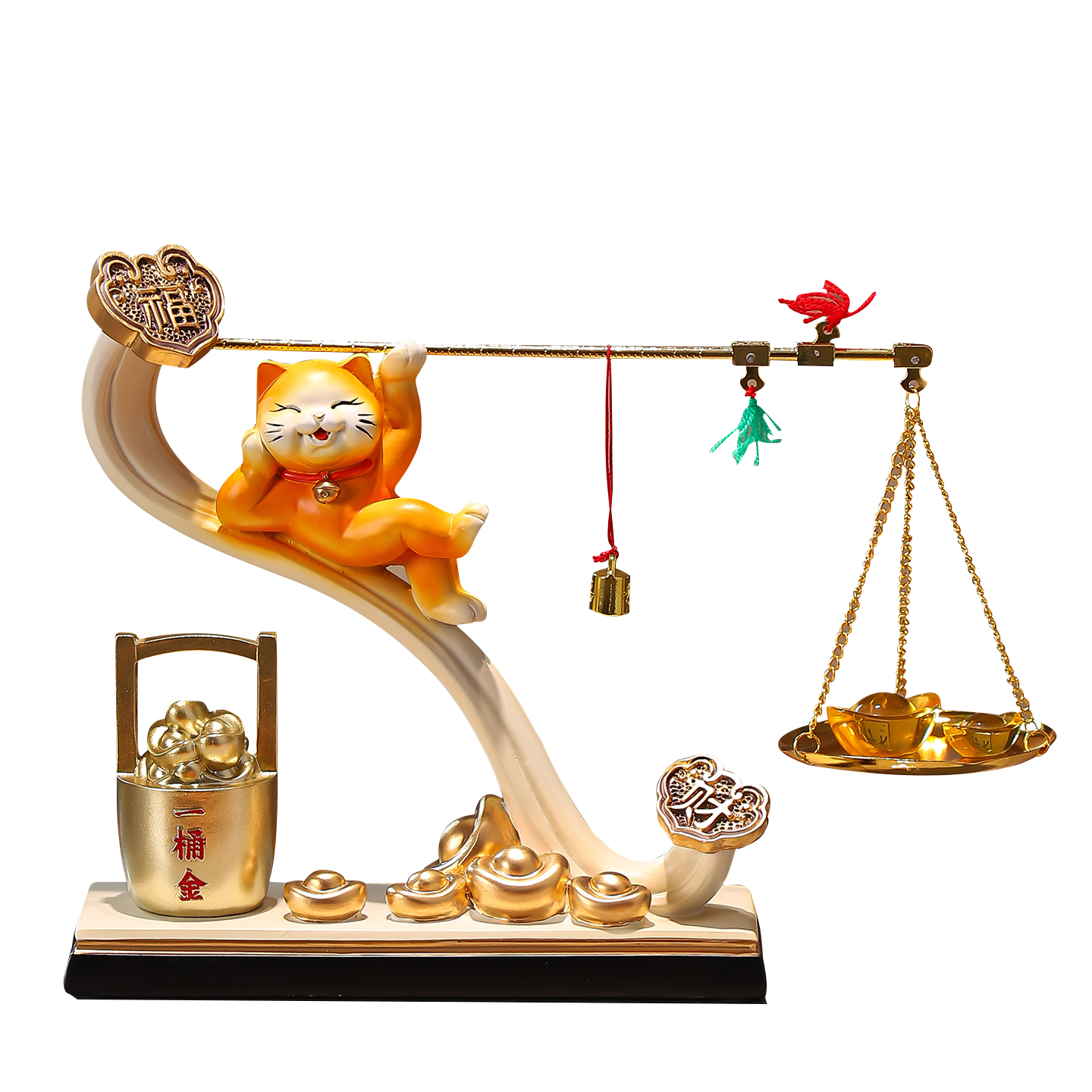 招财猫摆件称心如意一桶金客厅电视柜前台乔迁开业礼物高档装饰品 - 源升工艺品