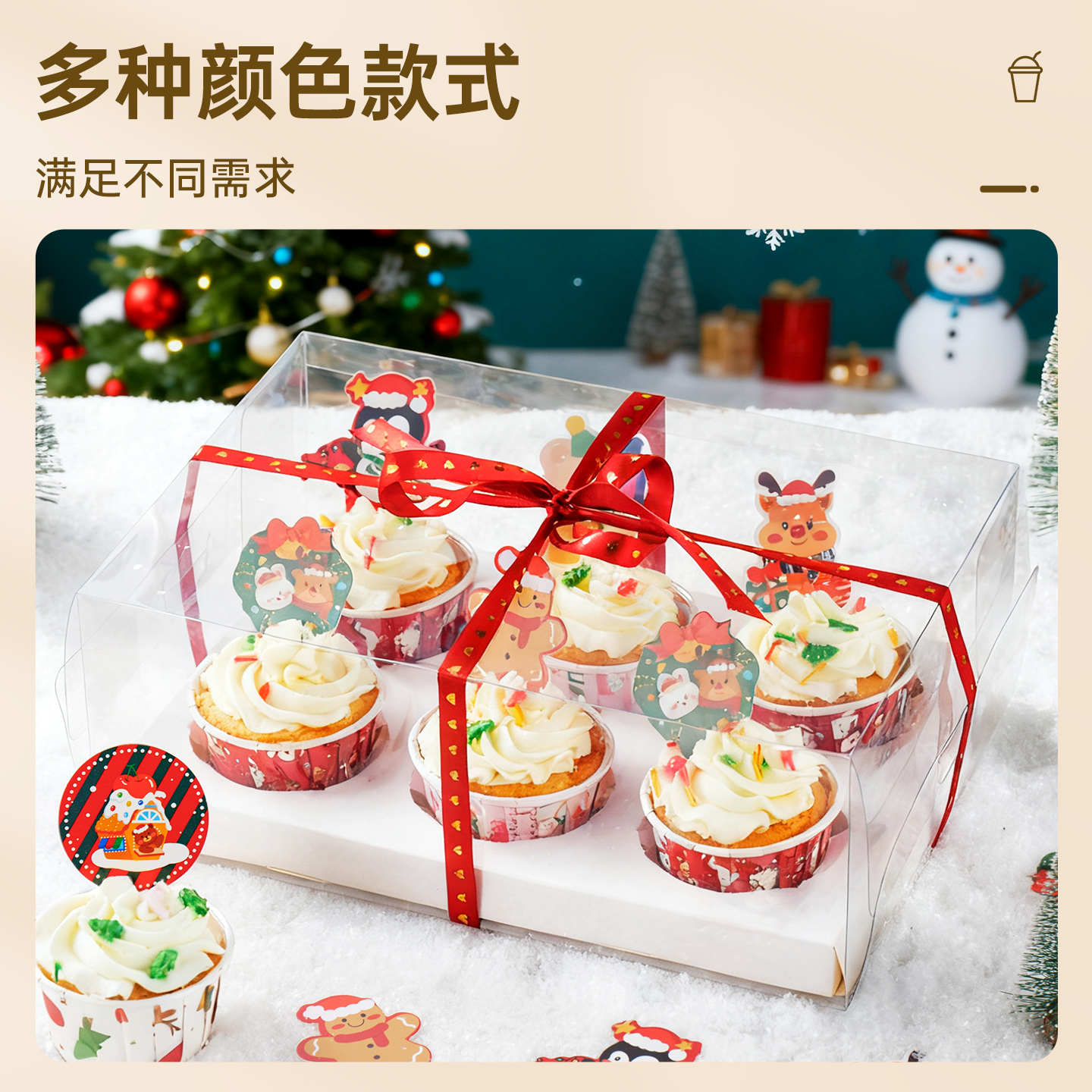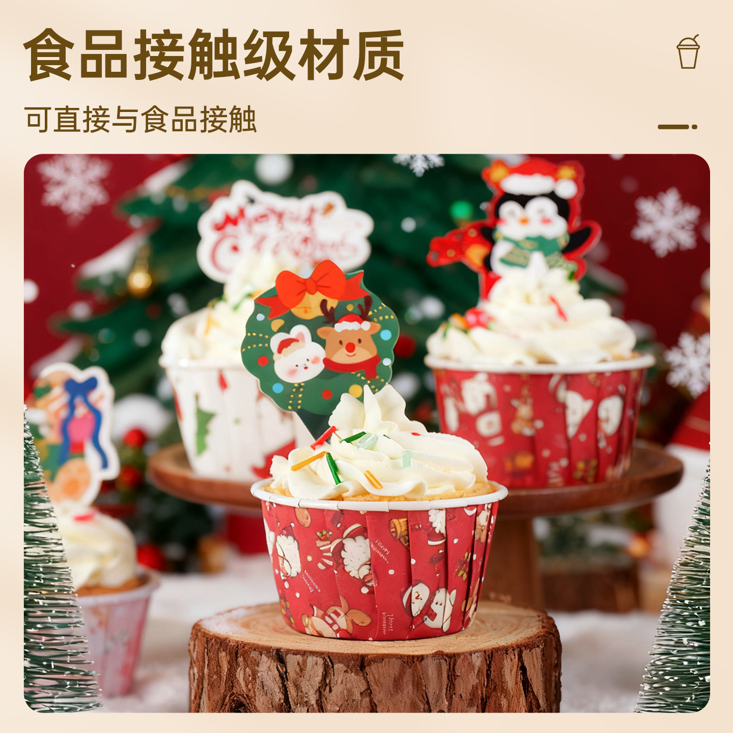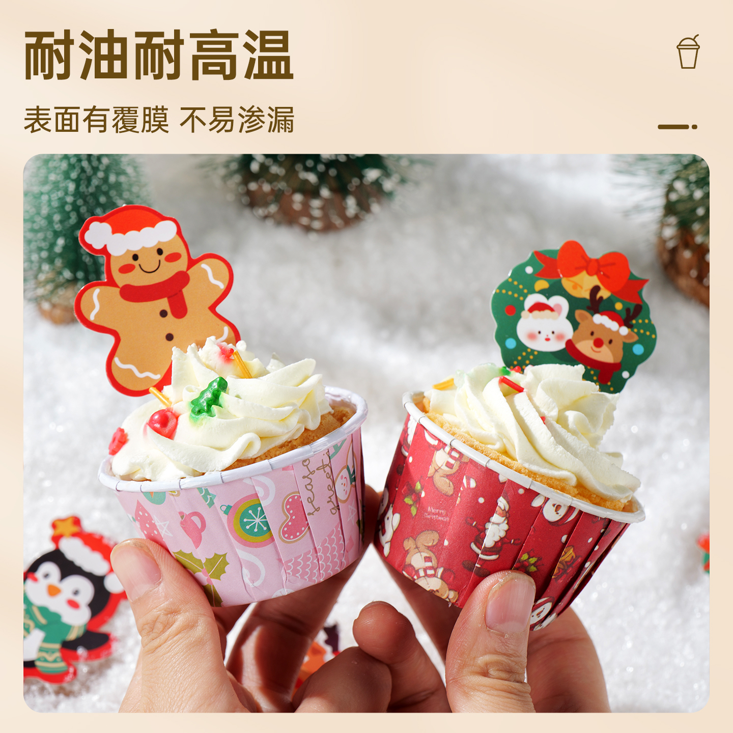 圣诞节纸杯蛋糕卷口杯纸托卷边马芬杯子耐高温烤箱家用装饰烘焙新