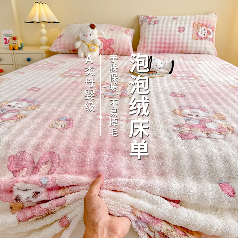 加厚牛奶绒床单单件冬季泡泡法兰绒珊瑚绒被单加绒三件套单人学生