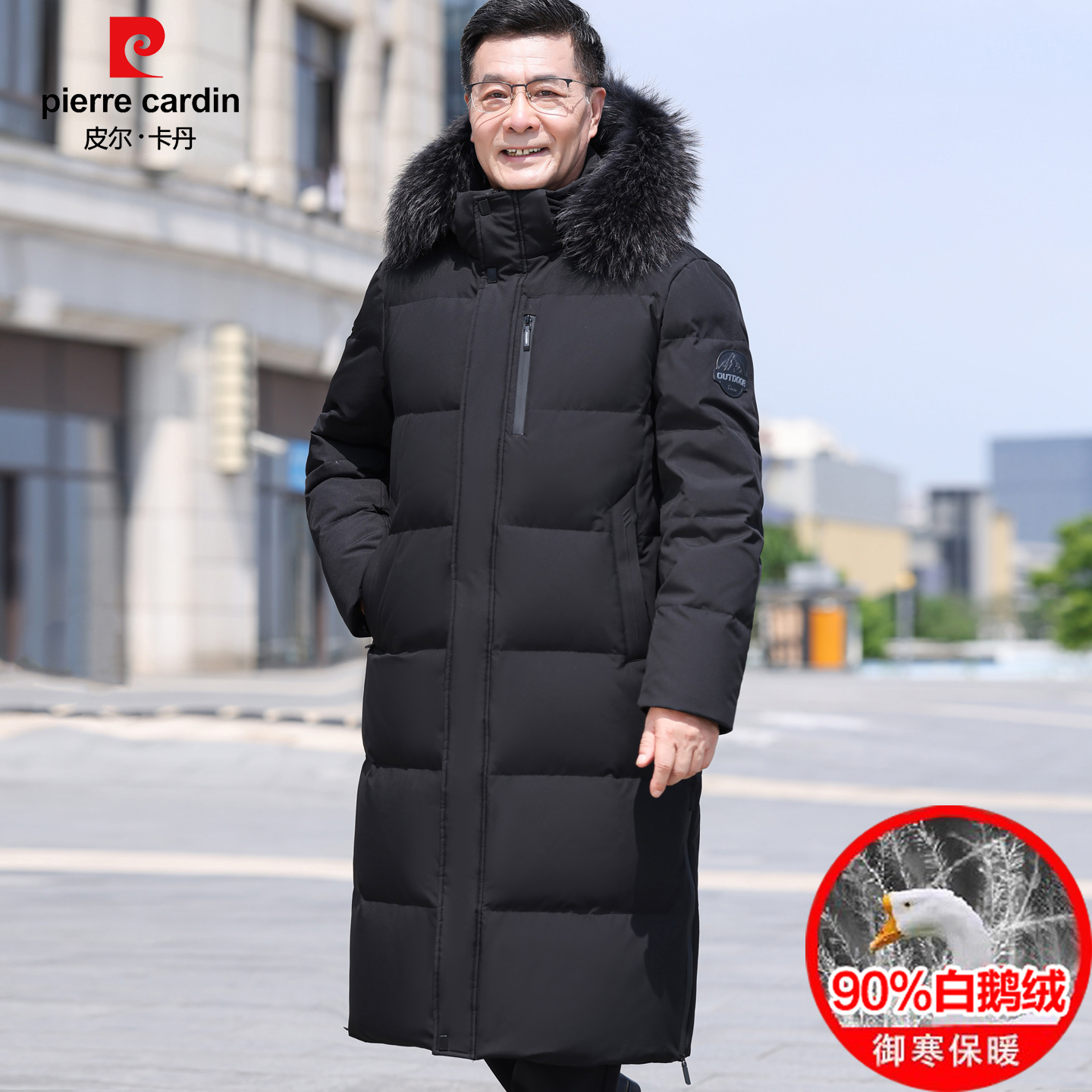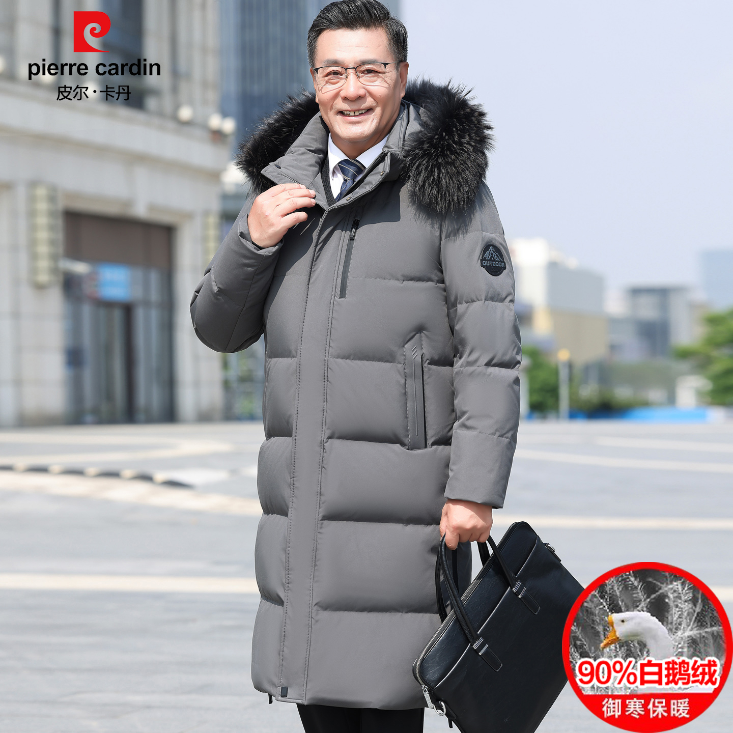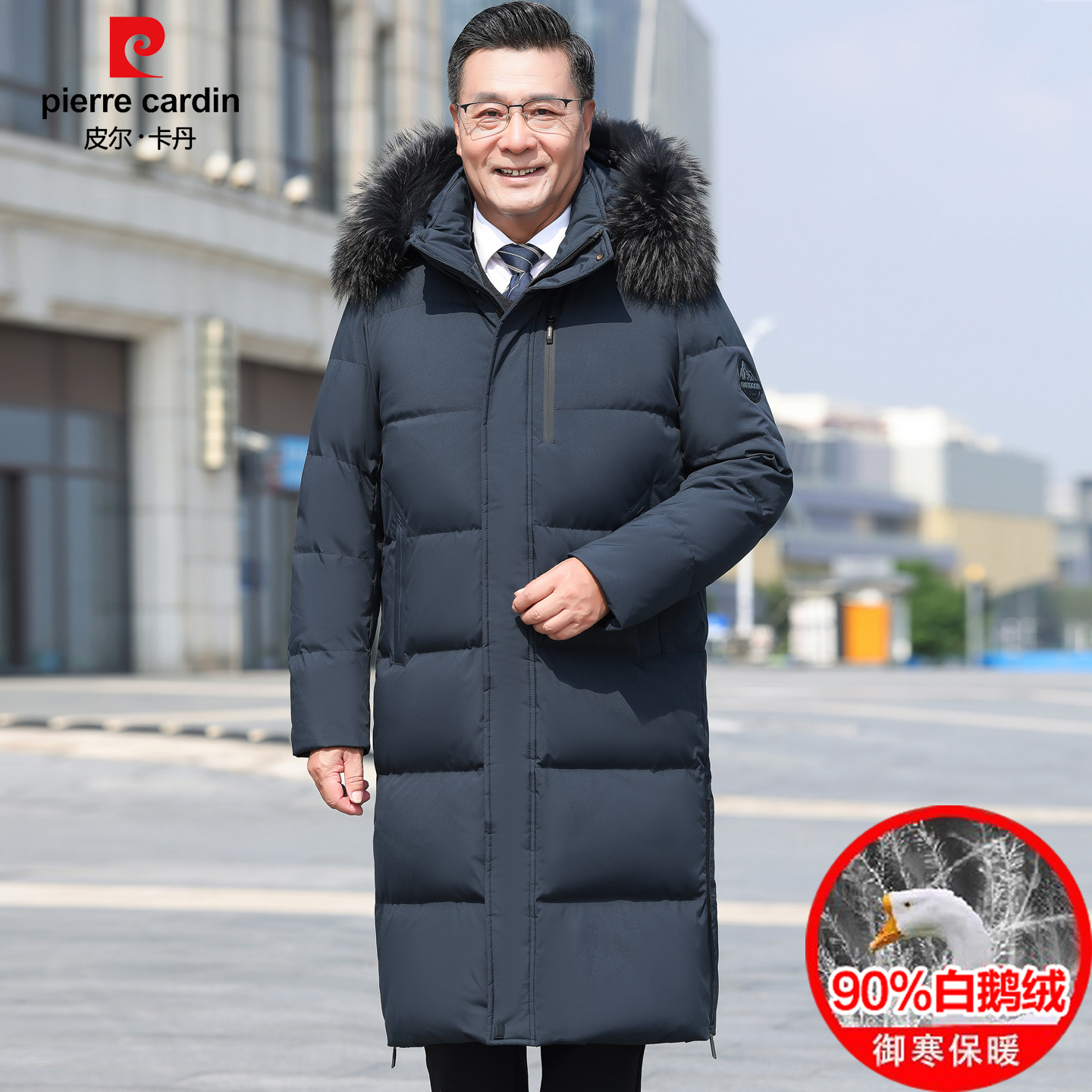 皮尔卡丹中长款羽绒服男爸爸装冬季白鹅绒过膝保暖加厚鹅绒服外套 - 皮尔卡丹万象店