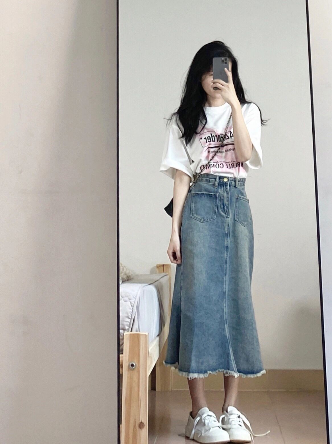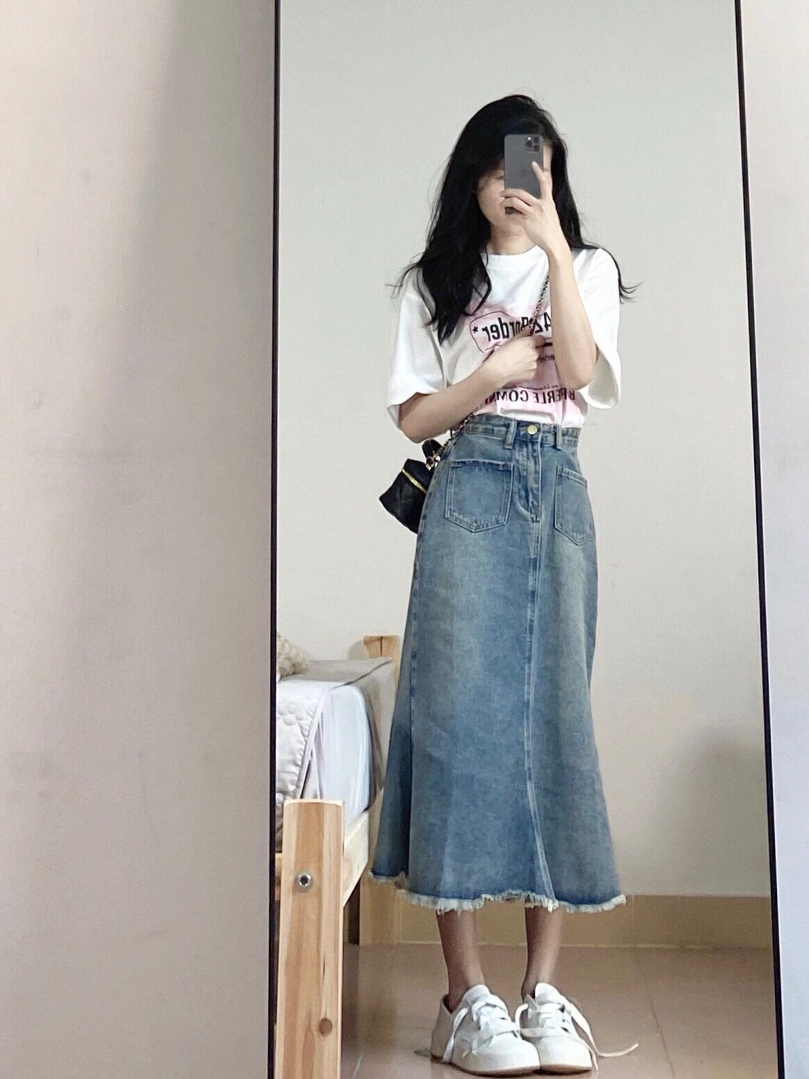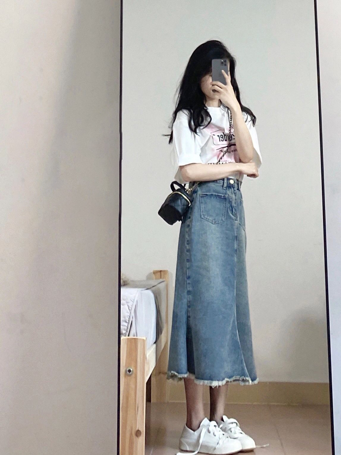 小个子设计感牛仔鱼尾裙女150cm小众高腰设计感包臀毛边半身裙xxs - 阿华家小个子女装
