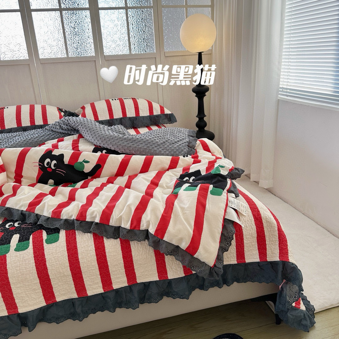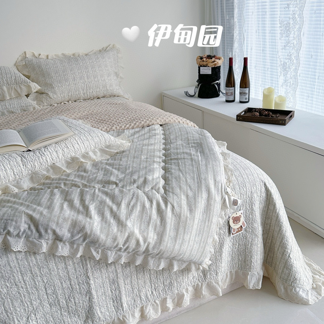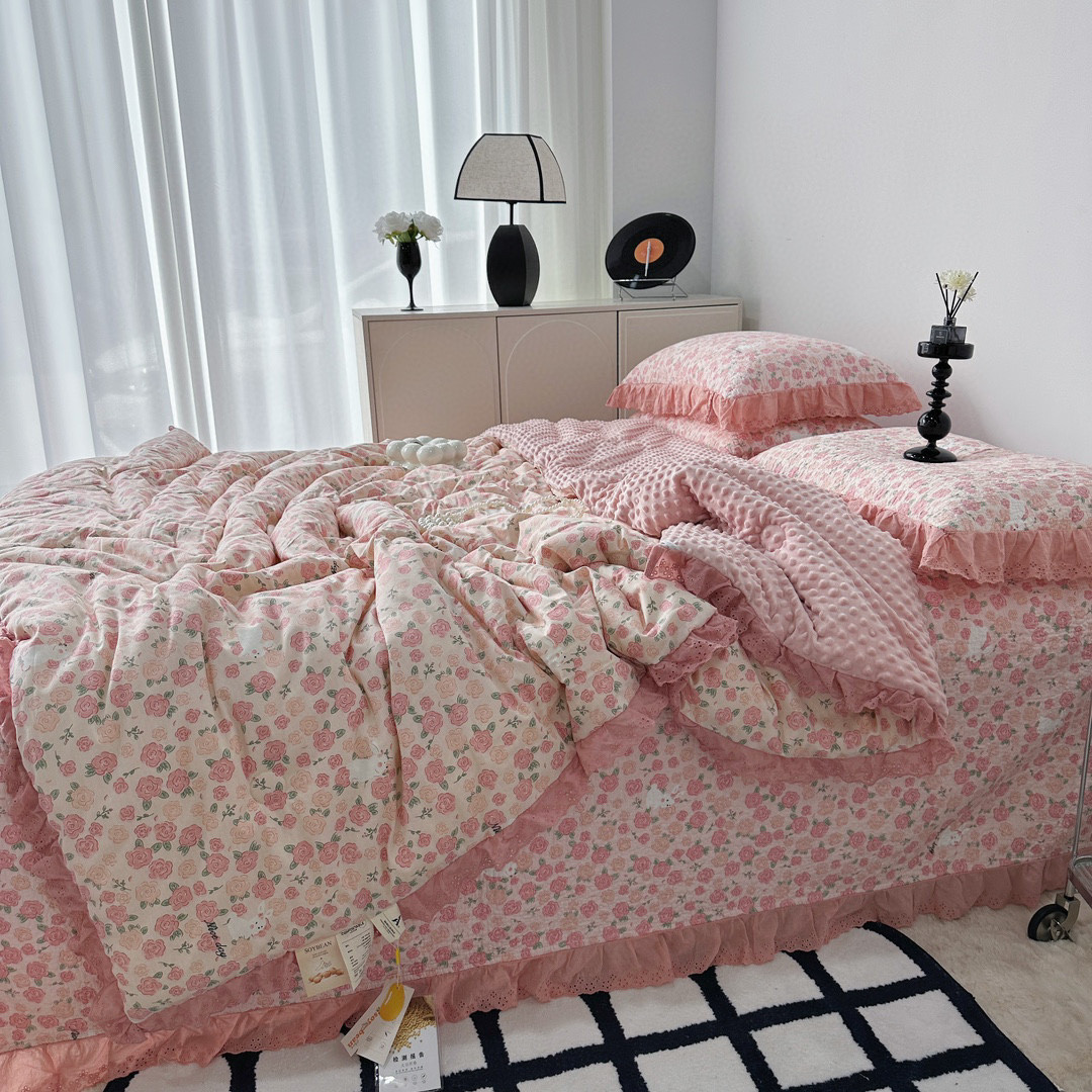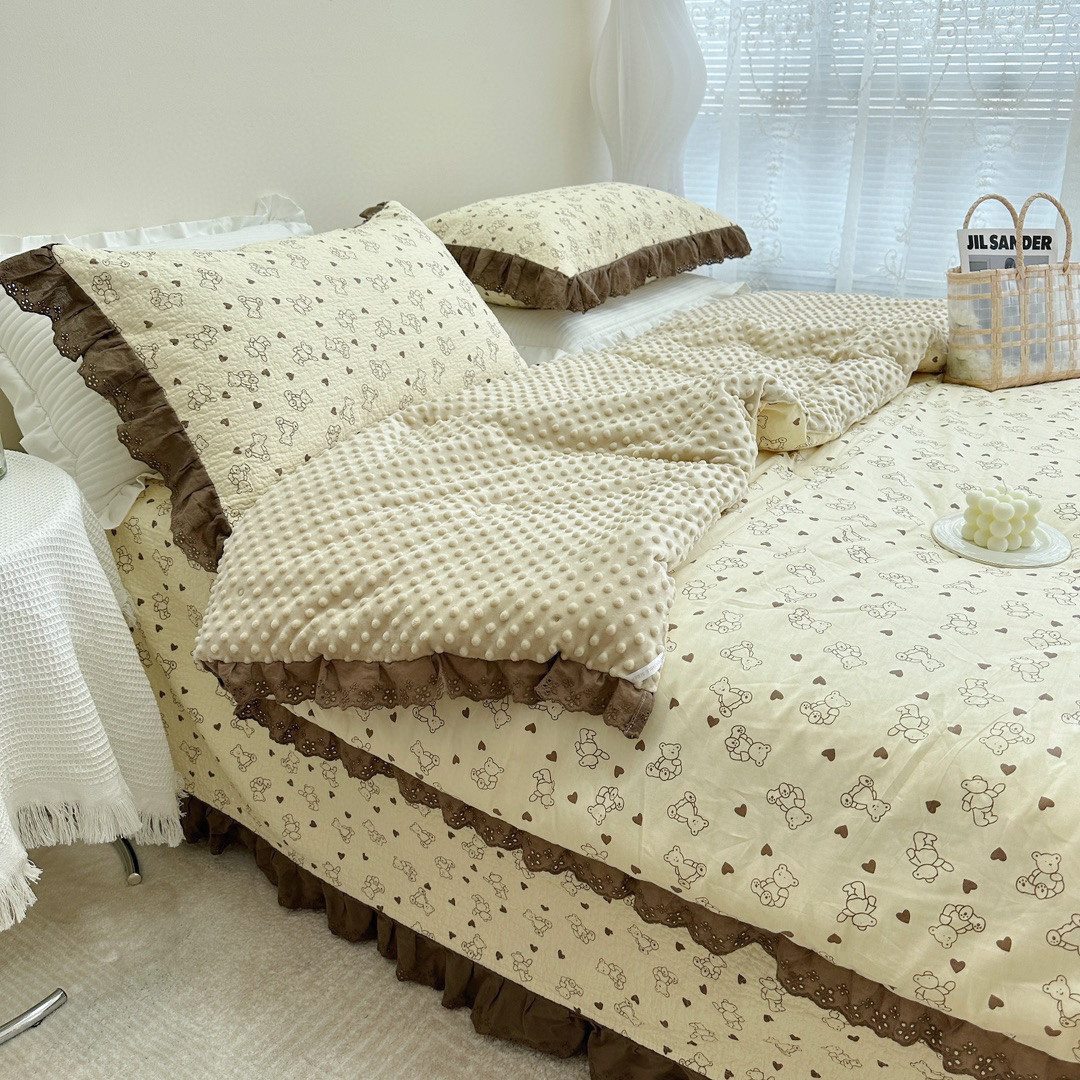 法式全棉床盖款全棉被四件套碎花豆豆裸睡亲肤双人床品套件
