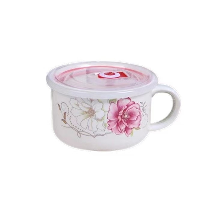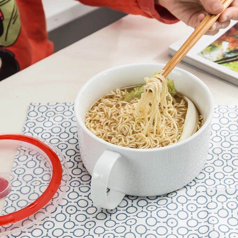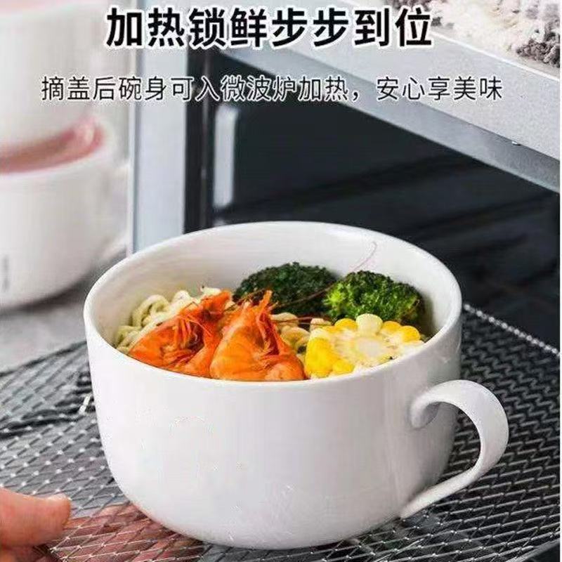 陶瓷泡面碗带盖保鲜碗饭盒学生便当盒大号方便面碗套装食堂打饭碗 - 越通日用陶瓷
