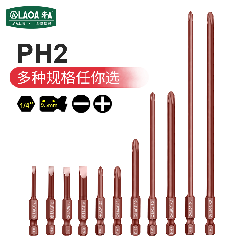 老A S2合金钢电动批头气动批头一字十字批嘴 风批头风批嘴PH2/PH1 - 老A通泰五金工具馆
