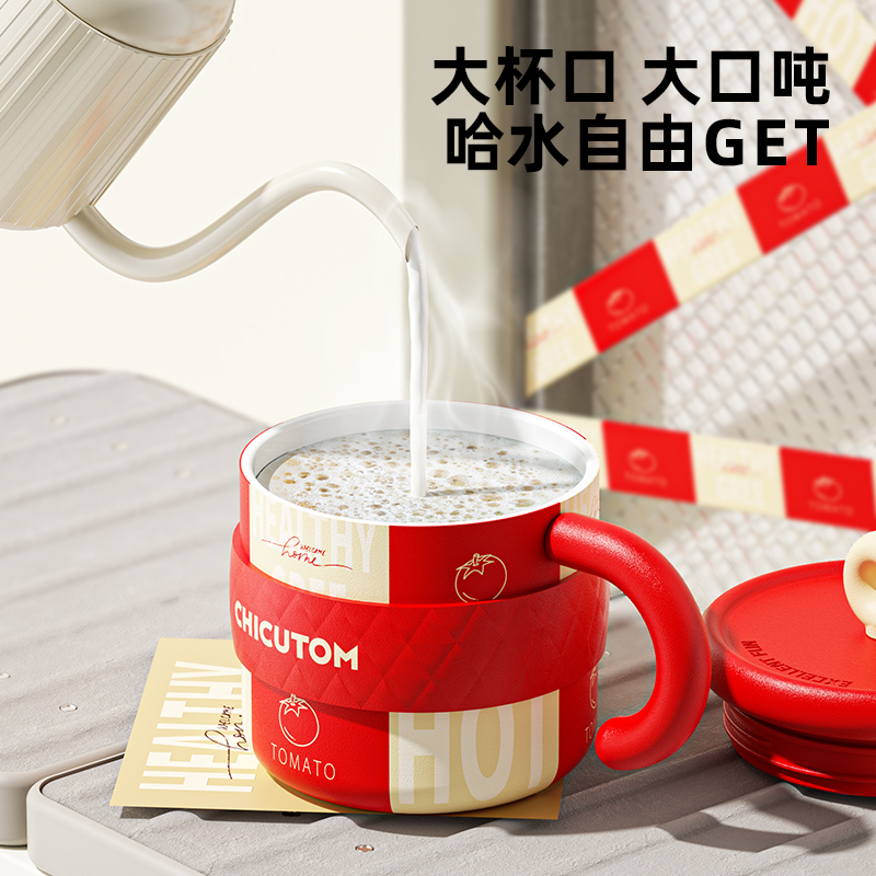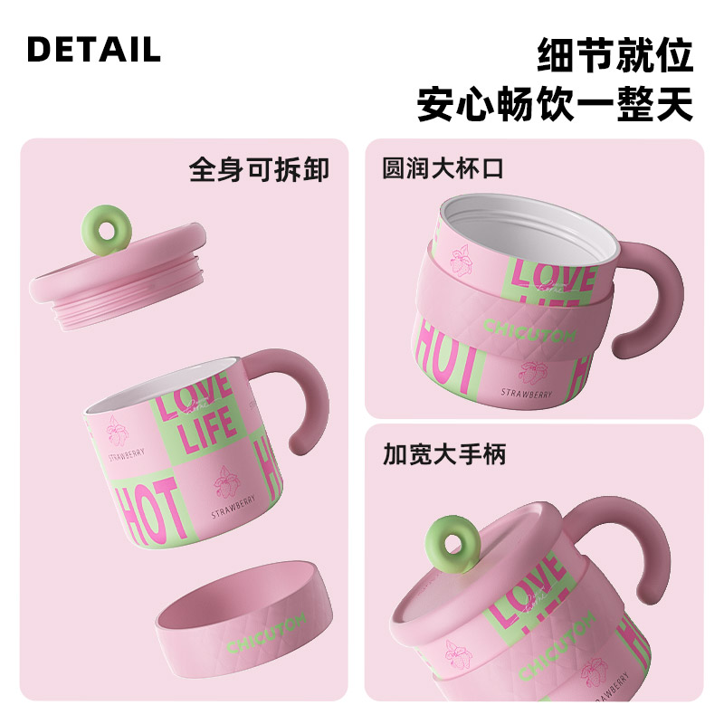 奇古堂吨吨保温杯女生款陶瓷马克杯带盖咖啡杯子办公室不锈钢水杯