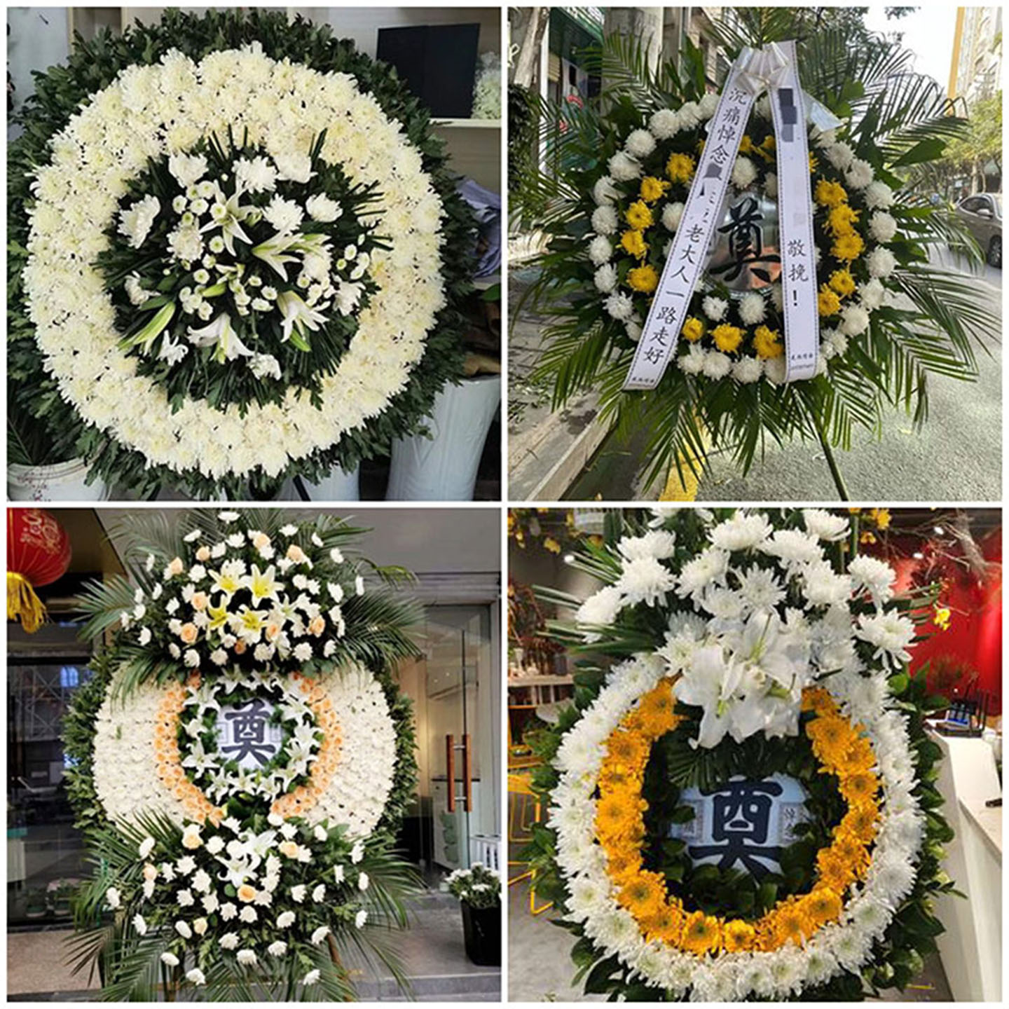 南阳镇平县唐河县桐柏县鲜花同城配送白事花圈丧事花蓝祭奠殡仪馆