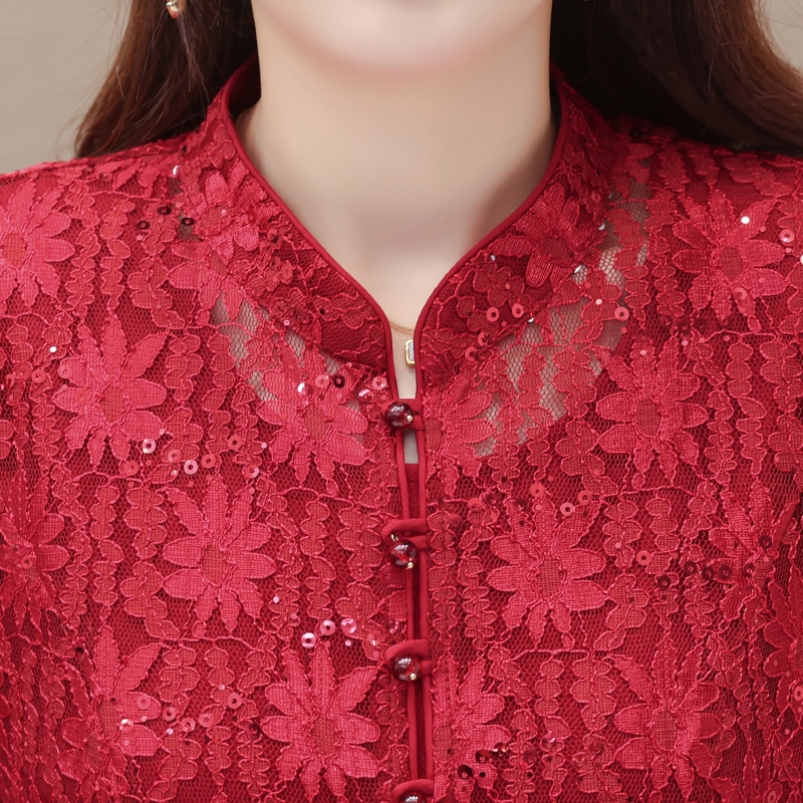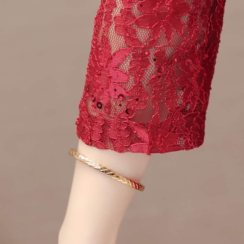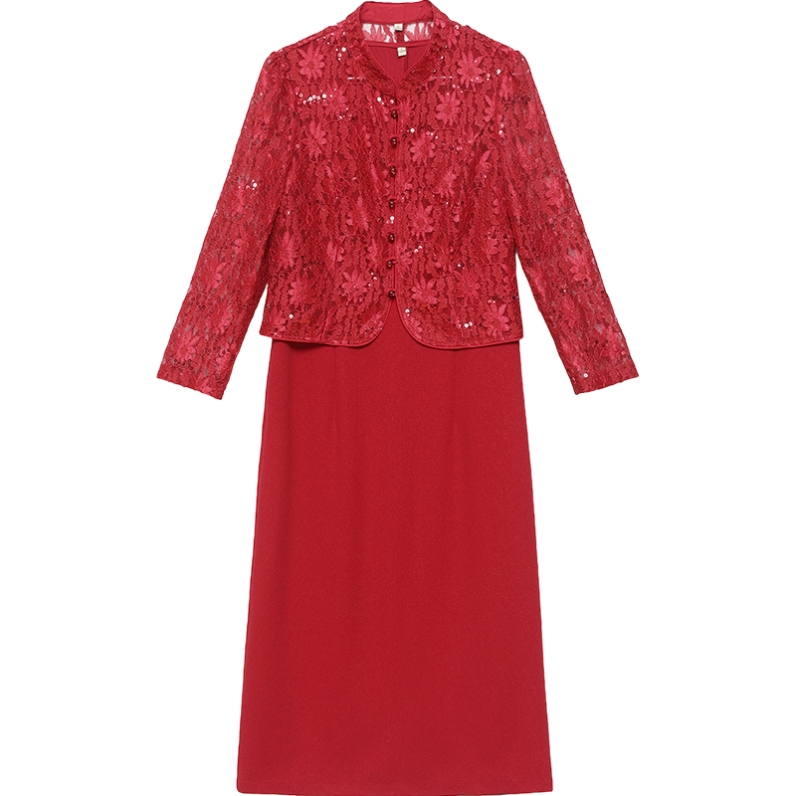 喜婆婆妈妈婚宴红色裙子2025新款秋季女改良两件套蕾丝旗袍连衣裙 - 玫瑰俪人