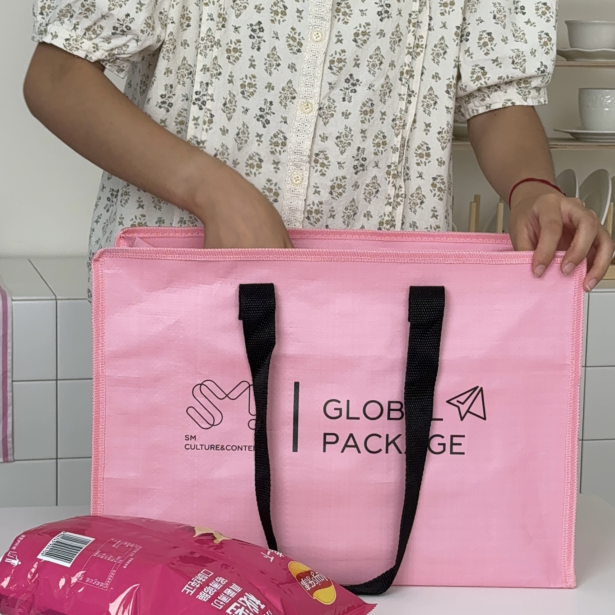 高品质环保编织袋韩国SM文化周边通勤防水旅行收纳多巴胺粉礼品袋 - 兜兜制造