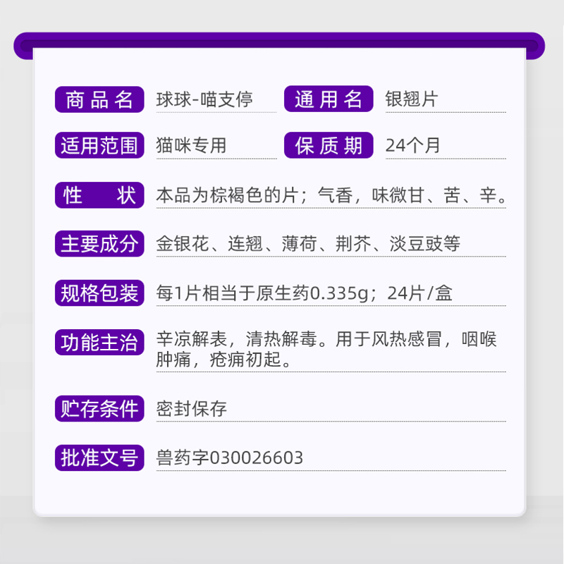 球球喵支停银翘片宠物猫鼻支感冒缓解猫咪咳嗽流涕发烧打喷嚏气喘 - 宠爱友佳宠物医疗