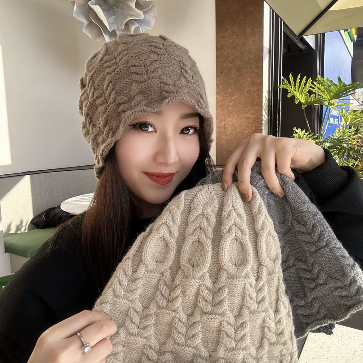 2025新款绞花编织堆堆帽子女秋冬百搭显脸小针织帽宽松包头毛线帽 - 温瑞宸帽子铺