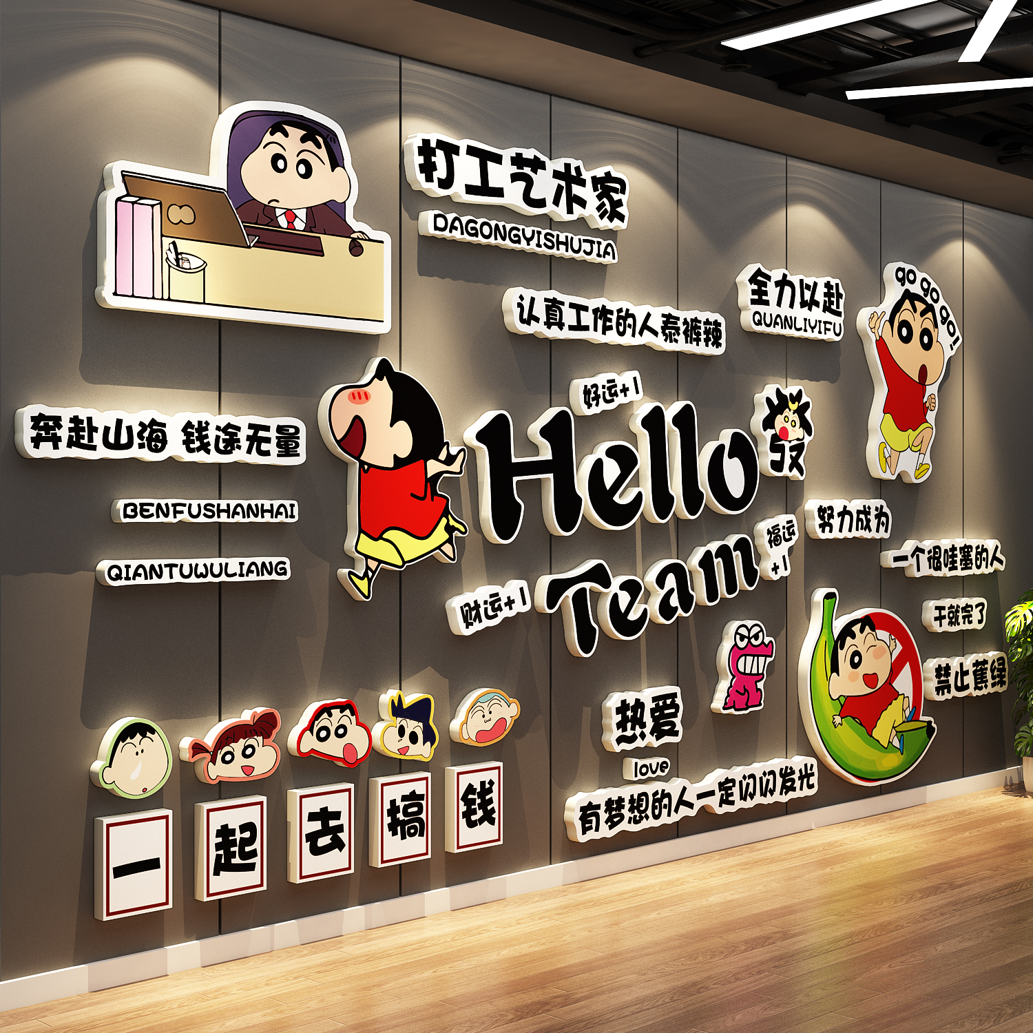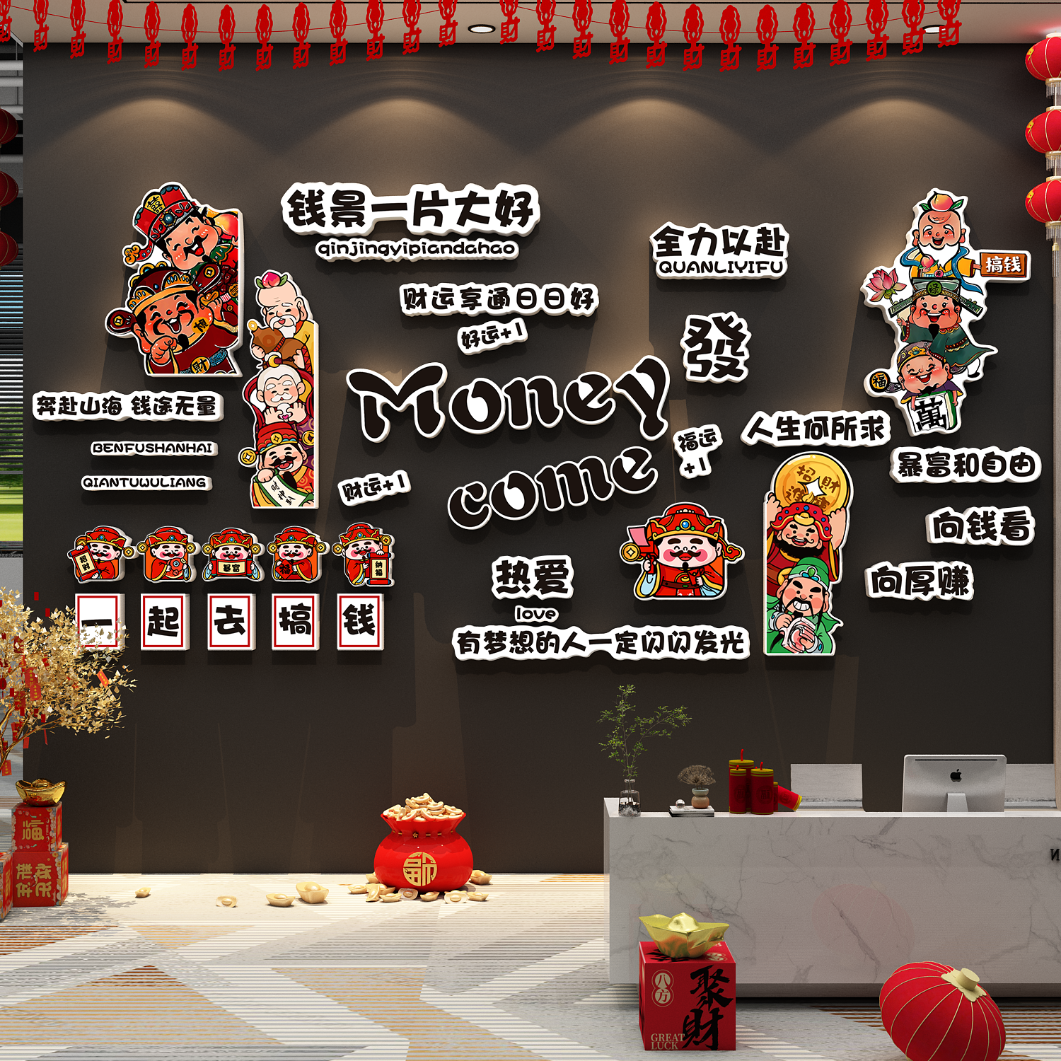 办公司室墙面装饰贴画公司进门形象背景企业文化气氛围布置财神爷 - 80饰家