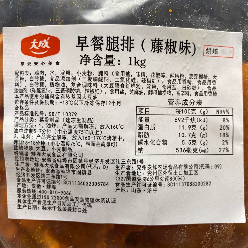 您的位置:他他商城  >  美食  >  大成藤椒味早餐腿排(烘焙)去骨鸡腿排汉堡油炸鸡排1kg10包