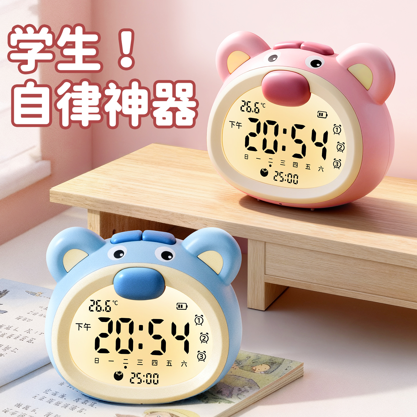 智能语音儿童闹钟学生专用计时器电子时钟2025新款起床神器钟表