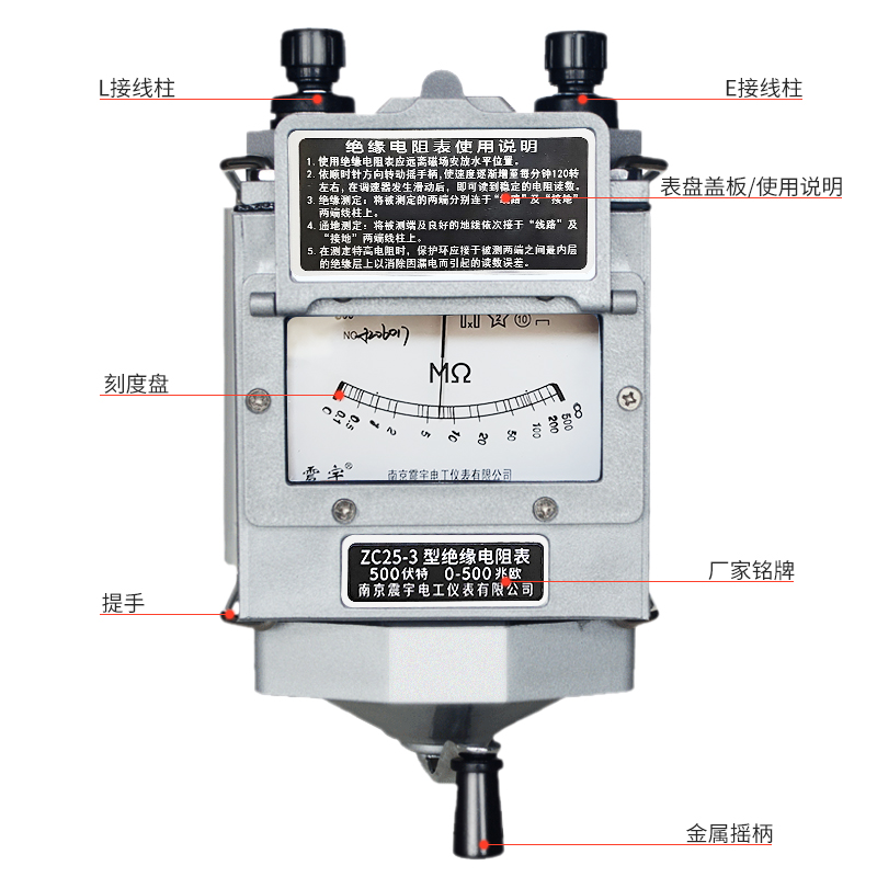 南京震宇ZC25/ZC11D摇表500V兆欧表1000V/P2500V绝缘电阻测试仪
