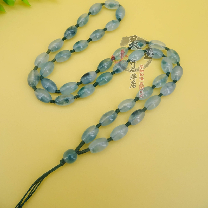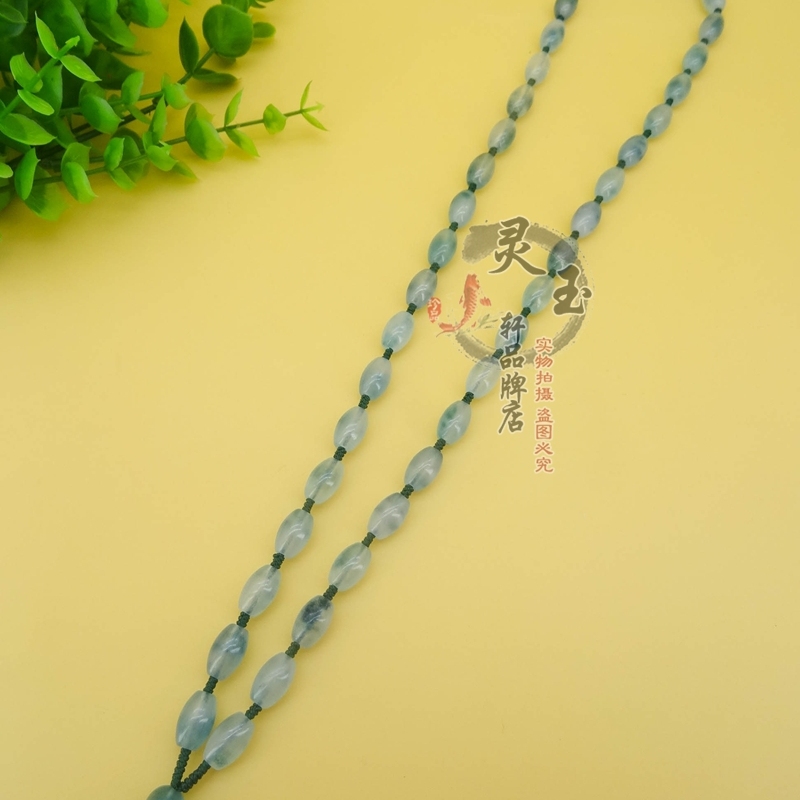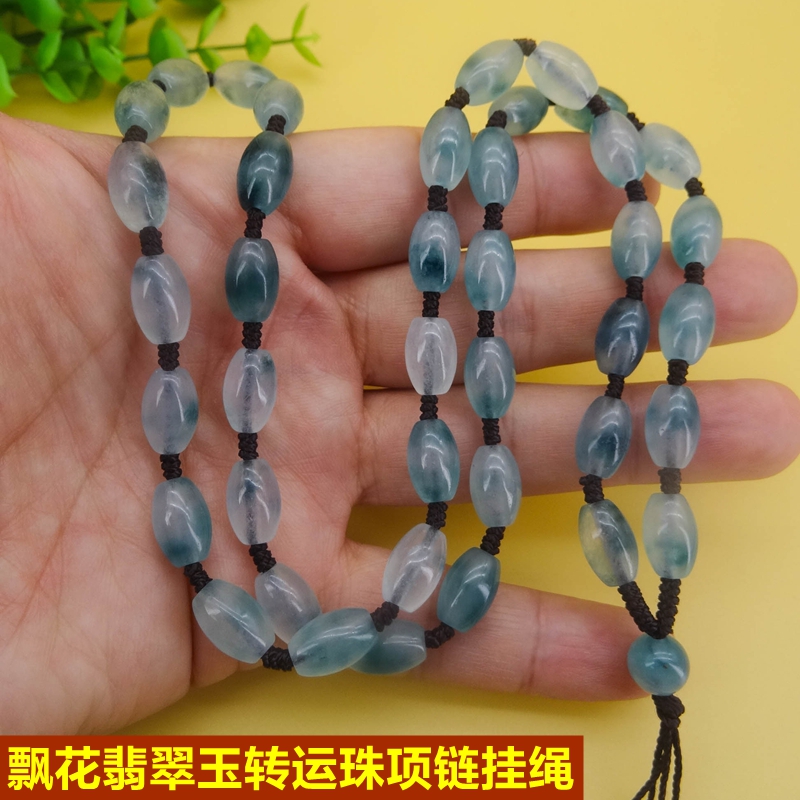 天然大款飘花转运珠翡翠玉石项链吊坠挂绳冰种男女款脖子挂脖长款 - 灵玉轩品牌店