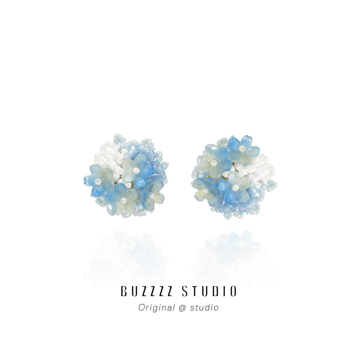 蓝色绣球〃米珠花耳钉小众多巴胺串珠彩色耳环甜美耳饰耳夹无耳洞 - BUZZZZ巴丝 设计师品牌