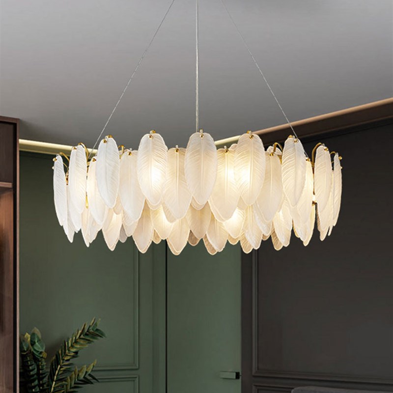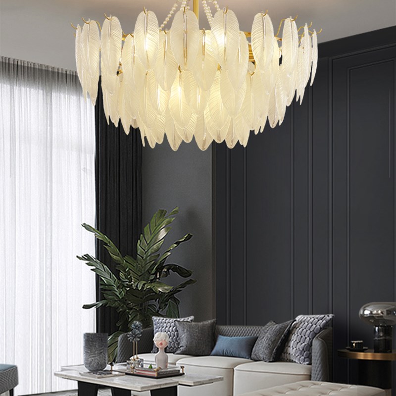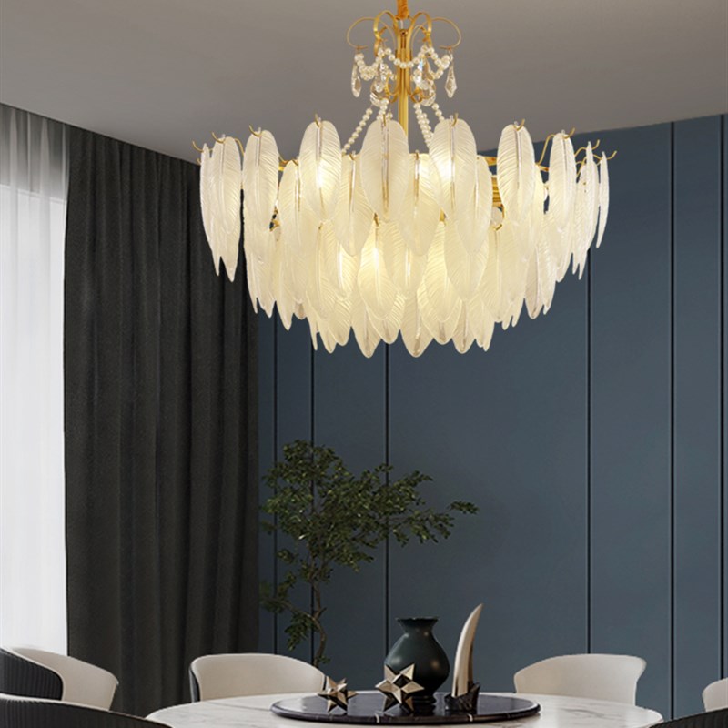 您的位置:他他商城  >   >  法国光豪华吊灯后现代极简主义z客厅卧室餐厅灯创意羽毛玻璃全铜