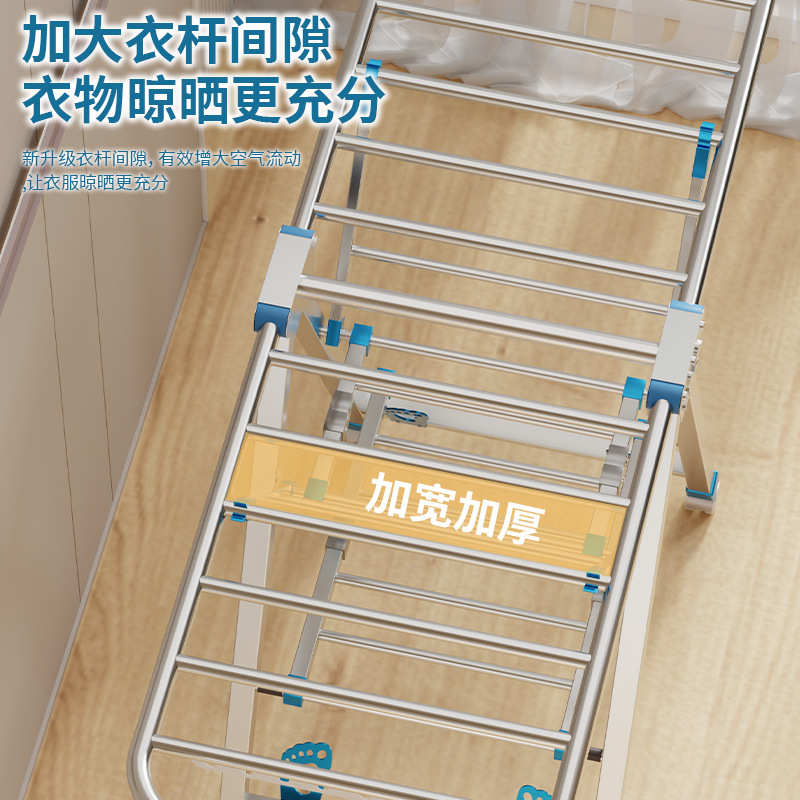 不锈钢折叠晾衣架阳台室内晾衣鞋被褥多功能家用商用落地衣架 - 笑笑的柚子的小店