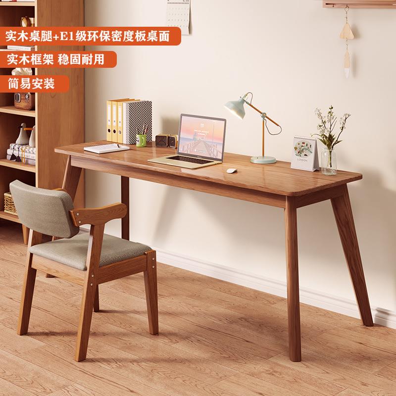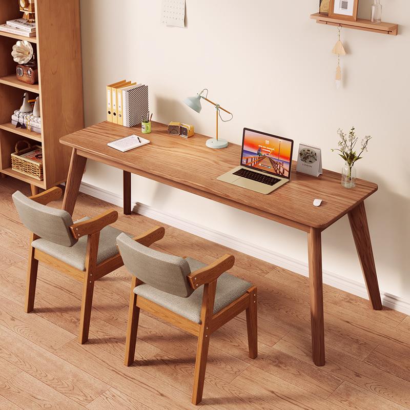 长条双人书桌实木桌腿家用靠墙卧室电脑桌双人简约现代移动学习桌