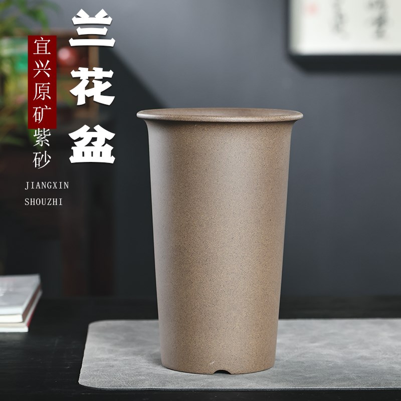 紫砂花盆兰花盆陶瓷紫砂花盆带托盘春蕙建寒吊兰草兰花专用花盆 - 耀世狂欢店