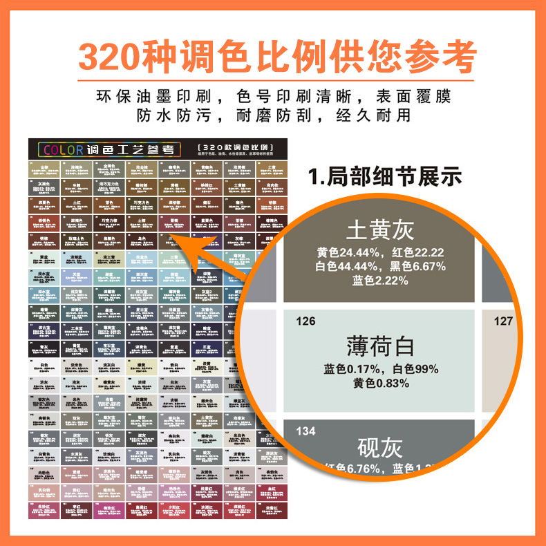 您的位置:他他商城  >   >  调色卡配方比例色卡家具维修专用皮革色粉油漆色膏喷漆上色教程表