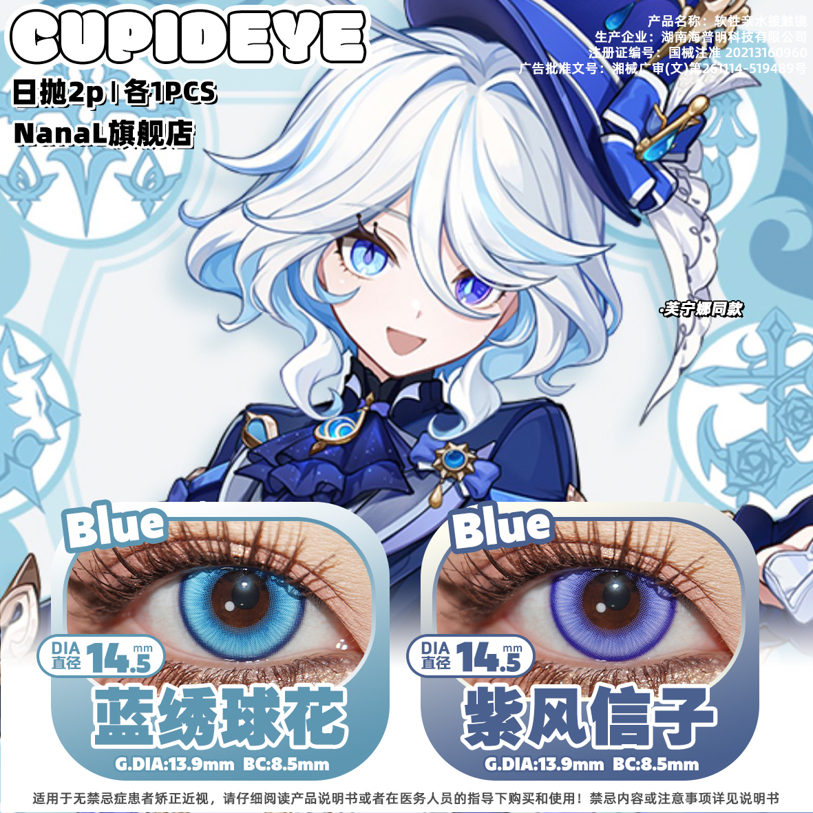 芙宁娜cos美瞳推荐深蓝浅蓝色混搭长期抛飞行蓝紫风信子蓝绣球花 - NanaL旗舰店