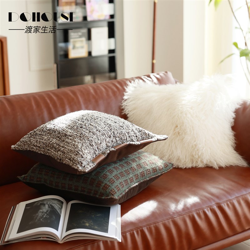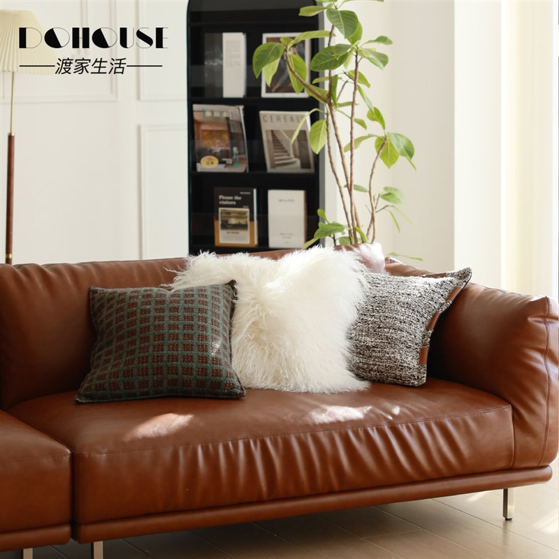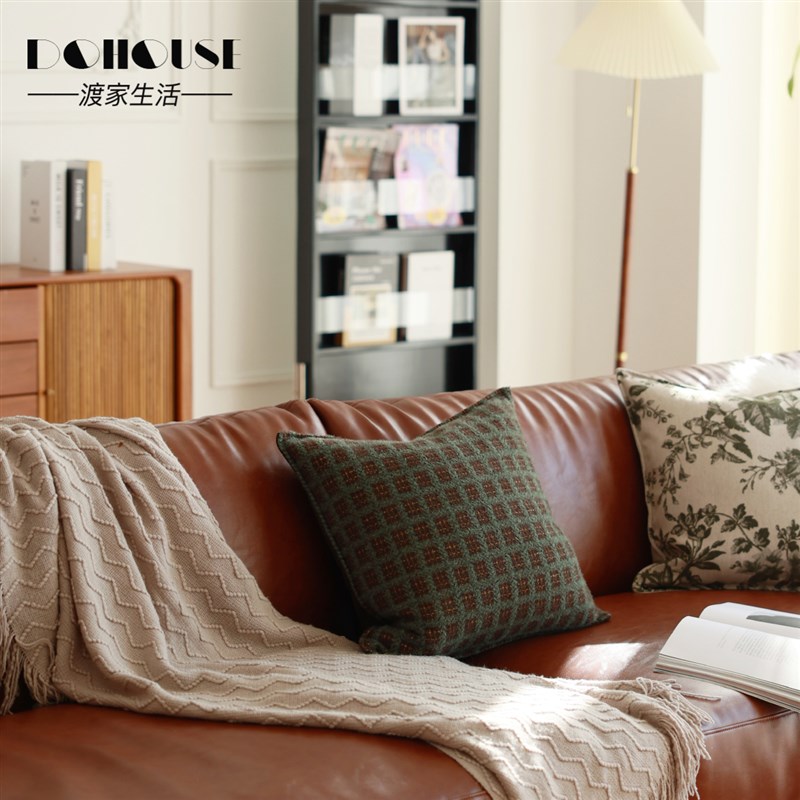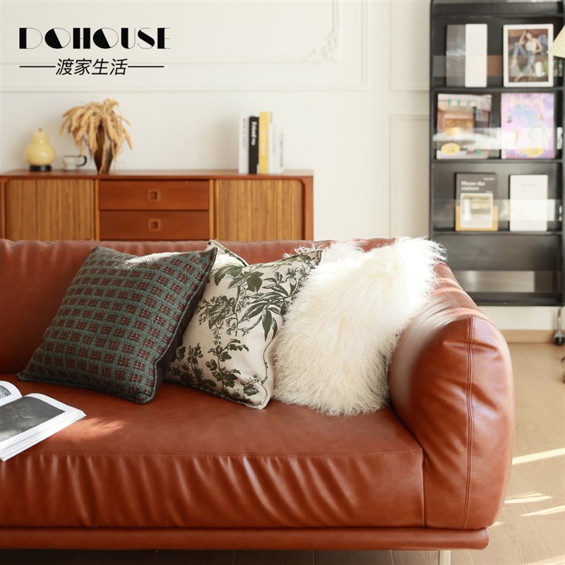 气质高品质复古奶l油风客厅橘橙色皮沙发搭配墨绿色抱枕靠垫组合 - tb1611138151