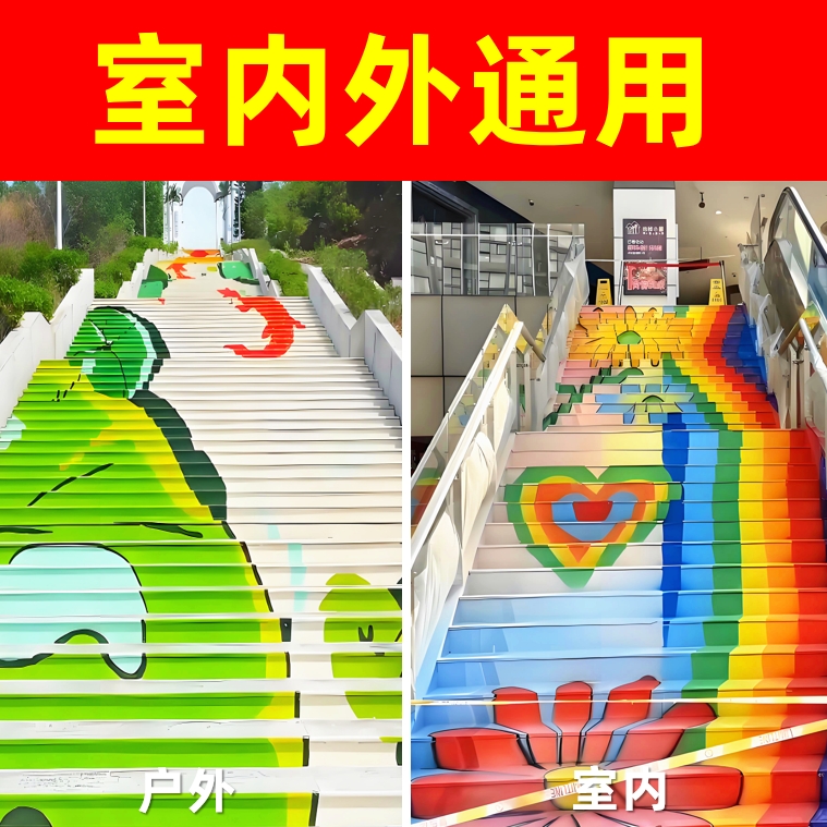 楼梯彩虹台阶地面专用彩绘漆路面彩色涂料水泥地板涂鸦绘画地坪漆