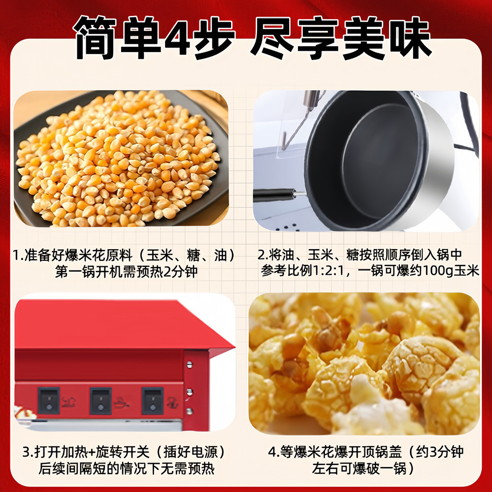 爆米花机商用全自动爆米花机器电热爆玉米花机膨化机爆谷机摆摊 - 谷湖商贸