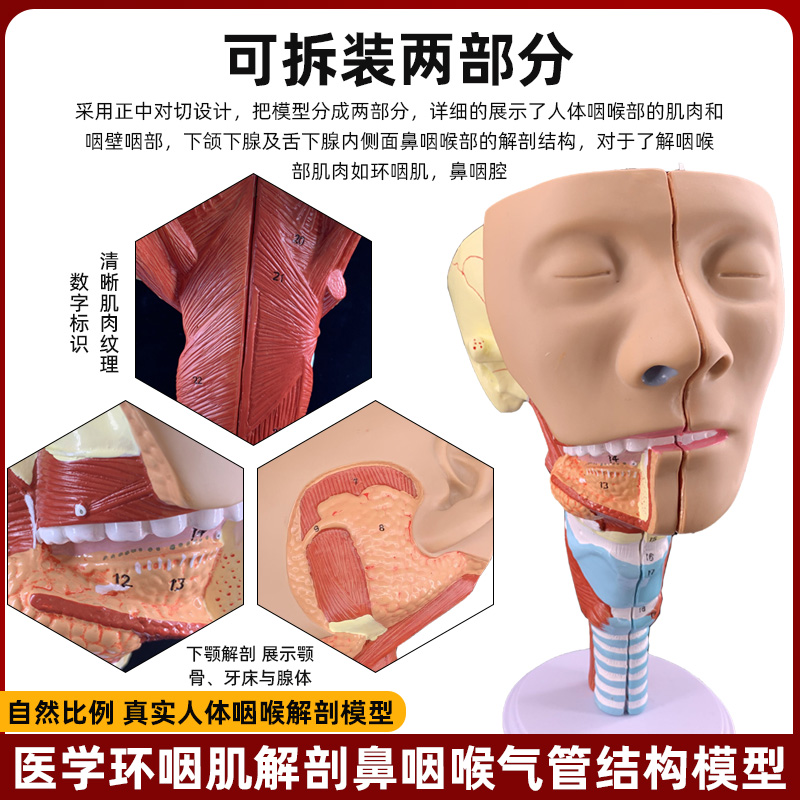 鼻咽喉气管环咽肌解剖吞咽障碍康复医学教学演示唾液腮腺鼻腔模型 - 霜龛旗舰店